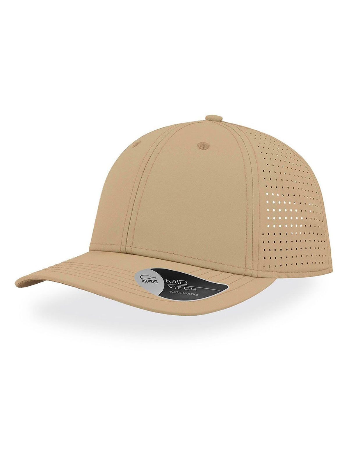Cappellino a 6 pannelli con corona traforata e fascia in tessuto 3D che lo rendono fresco e asciutto. Visiera precurvata, occhielli ricamati, 6 cuciture sulla visiera, chiusura in PVC, etichetta removibile.