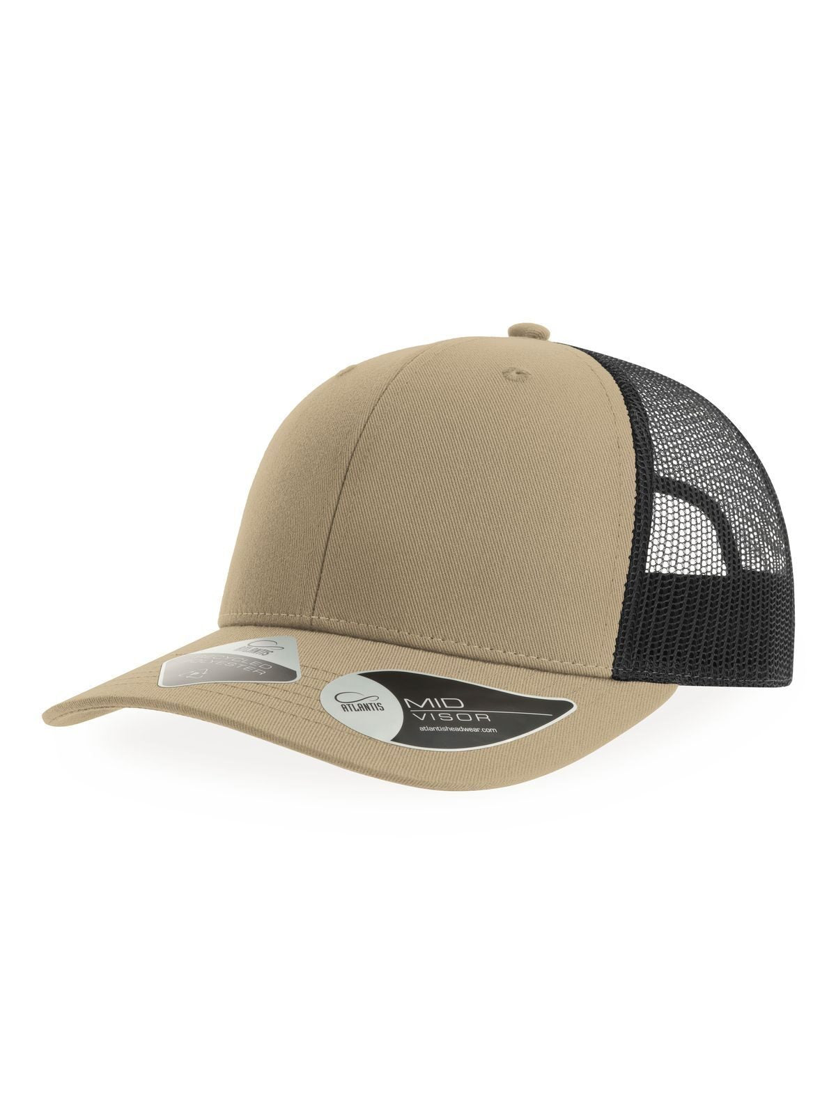 Cappellino trucker 6 pannelli con mesh e chiusura snapback. Ampia corona ideale per la personalizzazione, leggero, traspirante, etichetta removibile.