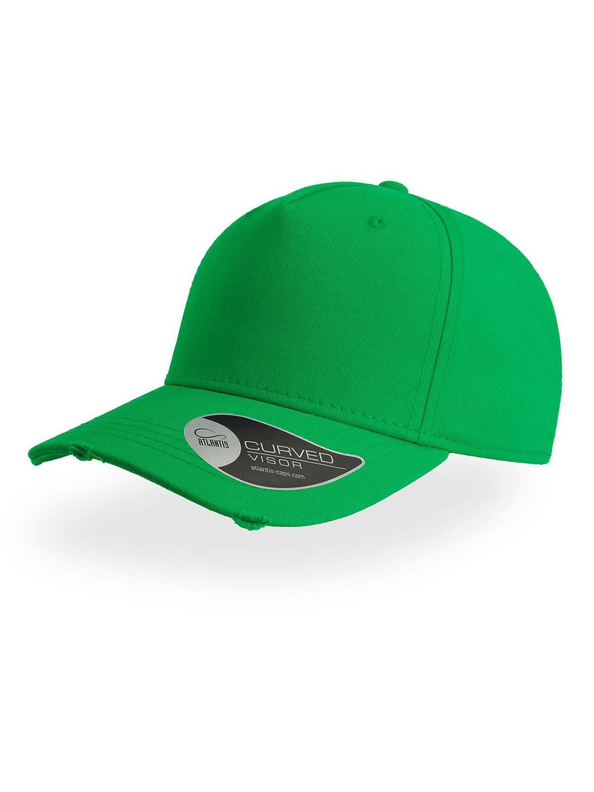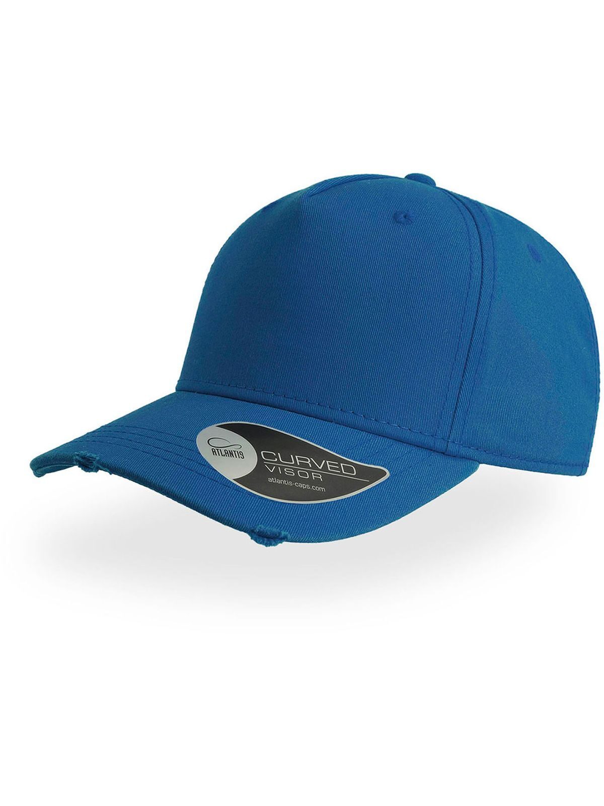 Cappellino a 5 pannelli con occhielli ricamati, visiera pre-curvata, pannello frontale rinforzato, parasudore in cotone, chiusura con fibbia in metallo, etichetta removibile, taglia unica.