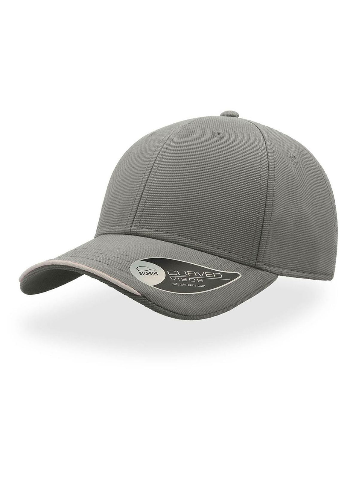 Cappellino a 6 pannelli, occhielli ricamati, pannello frontale rinforzato, visiera pre-curvata, chiusura in velcro, 4 cuciture su visiera, parasudore in poliestere, piping in contrasto, etichetta removibile, taglia unica. Nuovo codice: ATESTS