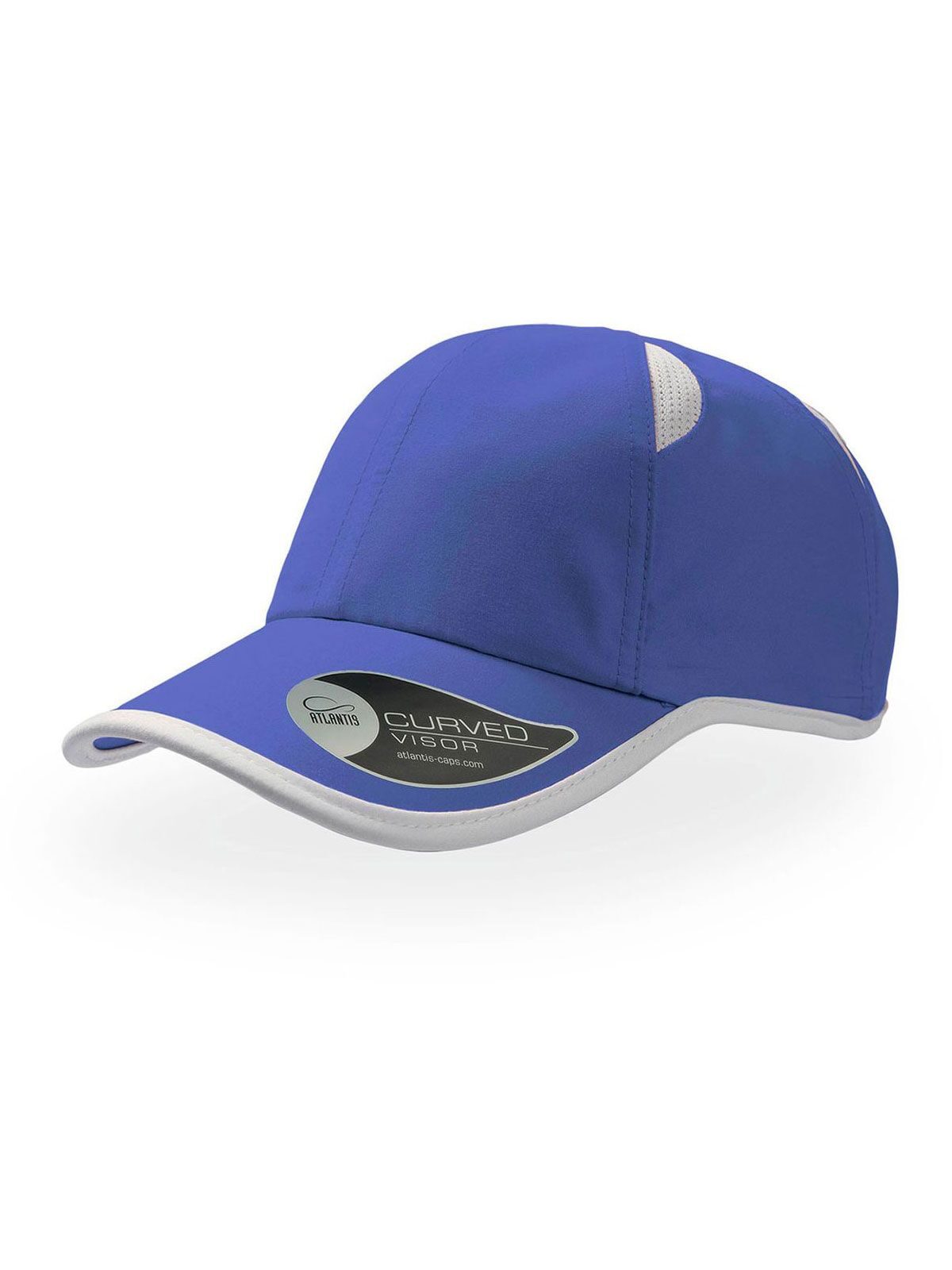 Cappellino a 6 pannelli, pannello frontale non strutturato, visiera pre-curvata, chiusura in velcro, bordato con fettuccia, 4 inserti mesh per aerazione, etichetta removibile, parasudore: 35% cotone - 65% poliestere.