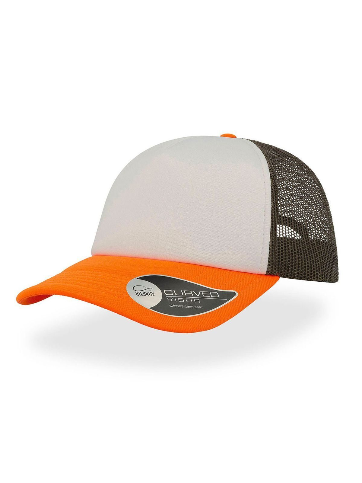 Cappellino a 5 pannelli con tradizionale pannello frontale e visiera in poliestere imbottito, pannelli laterali e posteriori in mesh, etichetta removibile, chiusura con cinturino in pvc, taglia unica.