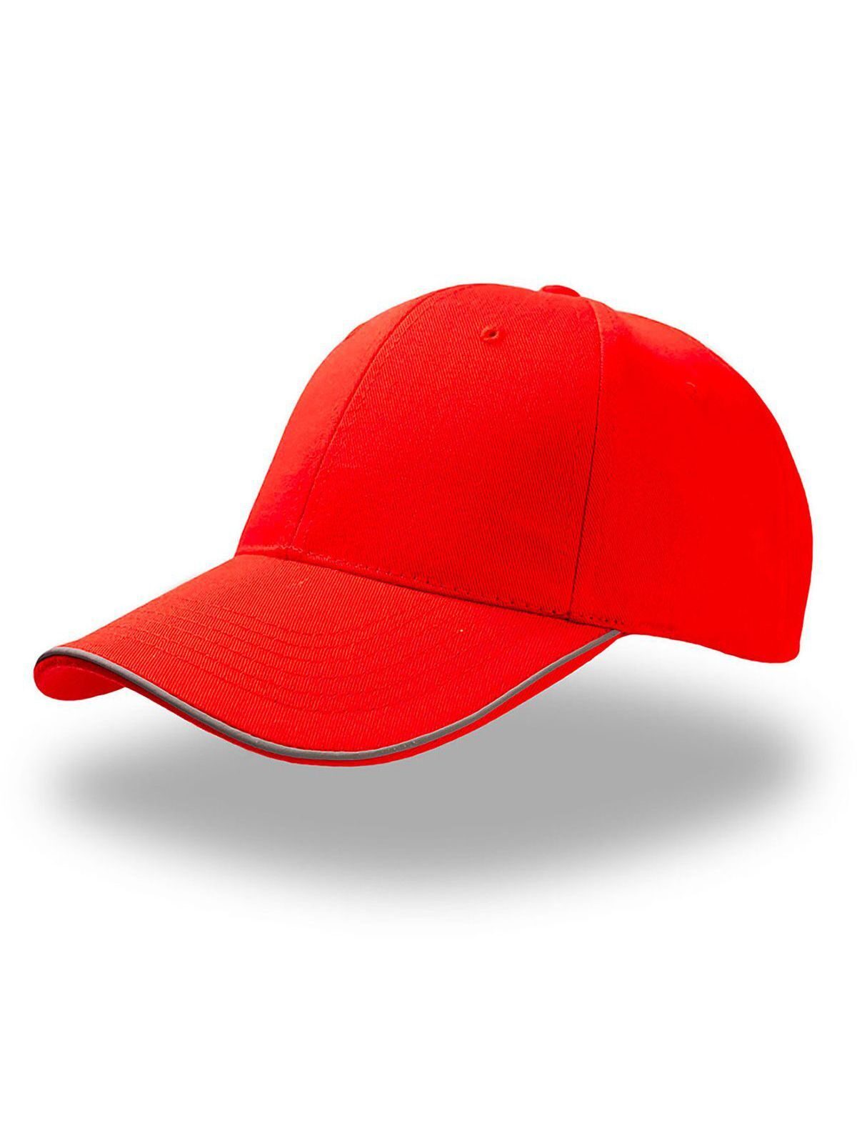 Cappellino a 6 pannelli, occhielli ricamati, piping riflettente sulla visiera e sulla chiusura, pannello frontale rinforzato, visiera pre-curvata, chiusura con fibbia e foro cucito, 6 cuciture su visiera, parasudore: 35% cotone - 65% poliestere. Etichetta removibile.
