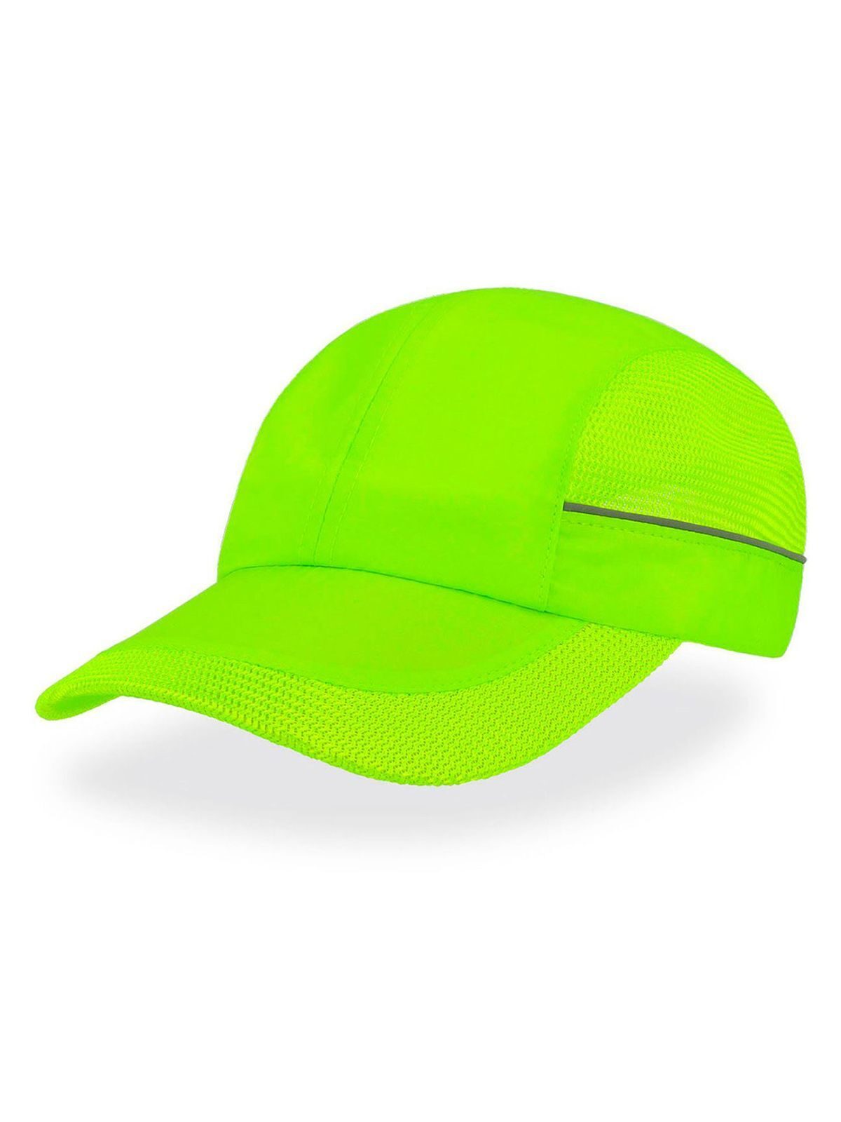 Cappellino a 4 pannelli con inserti a rete ai lati e sulla visiera precurvata, pannelli frontali non strutturati, nessun occhiello, parasudore 100% poliestere, piping catarifrangente a contrasto dietro e sui lati. Taglia unica. Etichetta removibile.