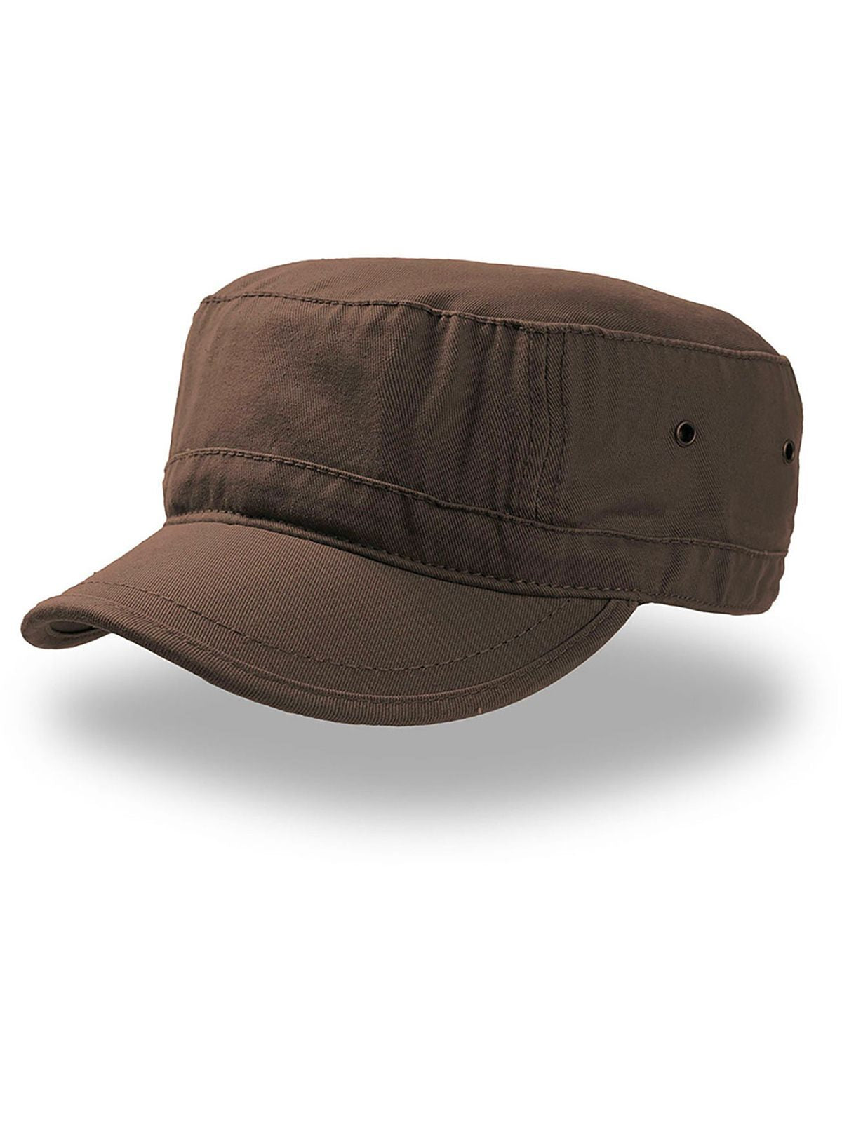 Cappello stile militare, occhielli in metallo, pannello frontale non strutturato, visiera pre-curvata, completamente chiuso, chiusura con fibbia in metallo, modello anche per bambino, 1 cucitura su visiera parasudore in cotone, fettuccia su visiera, etichetta removibile.