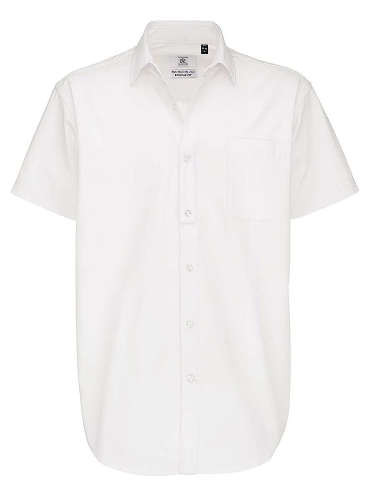 Camicia uomo con tasca lato cuore. Orlo piegato sulla manica con impunture a doppio ago. Bottoni effetto madreperla. Ultimo bottone con asola orizzontale. Un bottone di riserva, fissatore per cravatta, cuciture a doppio strato su lati e maniche.