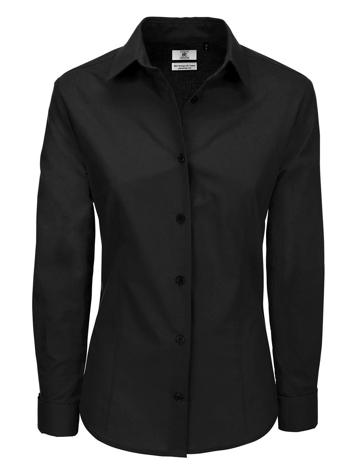 Camicia a maniche lunghe in tessuto popeline di facile stiratura, leggermente sfiancata. Doppio bottone quadrato al polsino con asola orizzontale. Pince sul busto fronte e retro. Bottoni in madreperla con cucitura a croce. Bottone di riserva. Lavabile a 50°C.