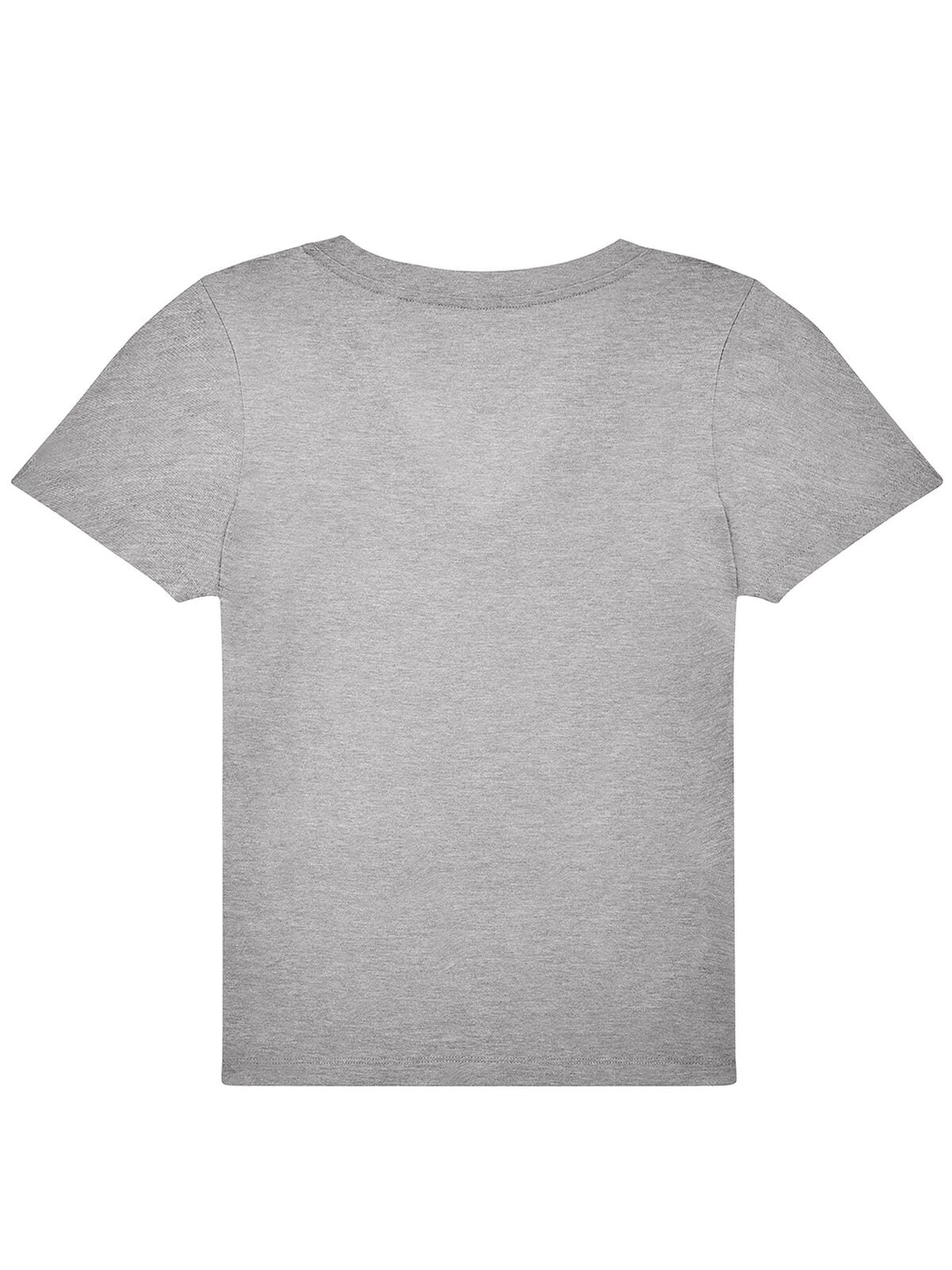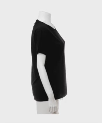 T-shirt manica corta dal tessuto morbido al tatto, scollo a V stretto in costina 1x1, fettuccia sul collo dello stesso tessuto del corpo, nuova etichetta nel collo rimovibile. Col 94: 97% cot. 3% pol.
