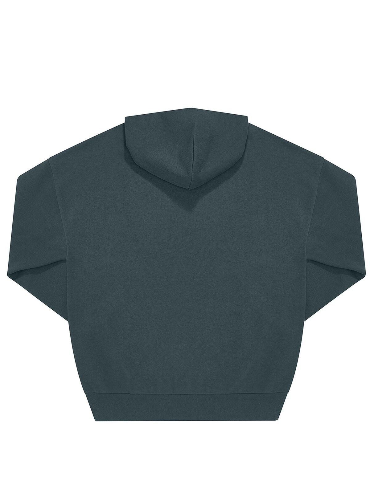 80% cotone 20% poliestere riciclato. Felpa con cappuccio a mantellina, spalle scese e taglio oversize, gender-neutral, tessuto PST, felpata internamente, sensazione lussuosa al tatto, senza etichetta. Col. SG620: 73% cot. 21% pol.ric. 6% vis.
