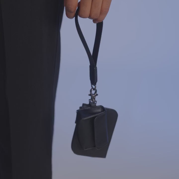 100% simil-pelle PU. Marsupio da polso, composto da tre pezzi: custodia per Airpods con apertura a pressione, portacarte con cerniera, fettuccia da polso. Finiture in metallo dorato. Compatibile con le borse e gli accessori della collezione Boutique. Etichetta removibile. Airpod Case: 8x5x3cm; Astuccio: 12x3cm, Manico: 13,2,6cm.