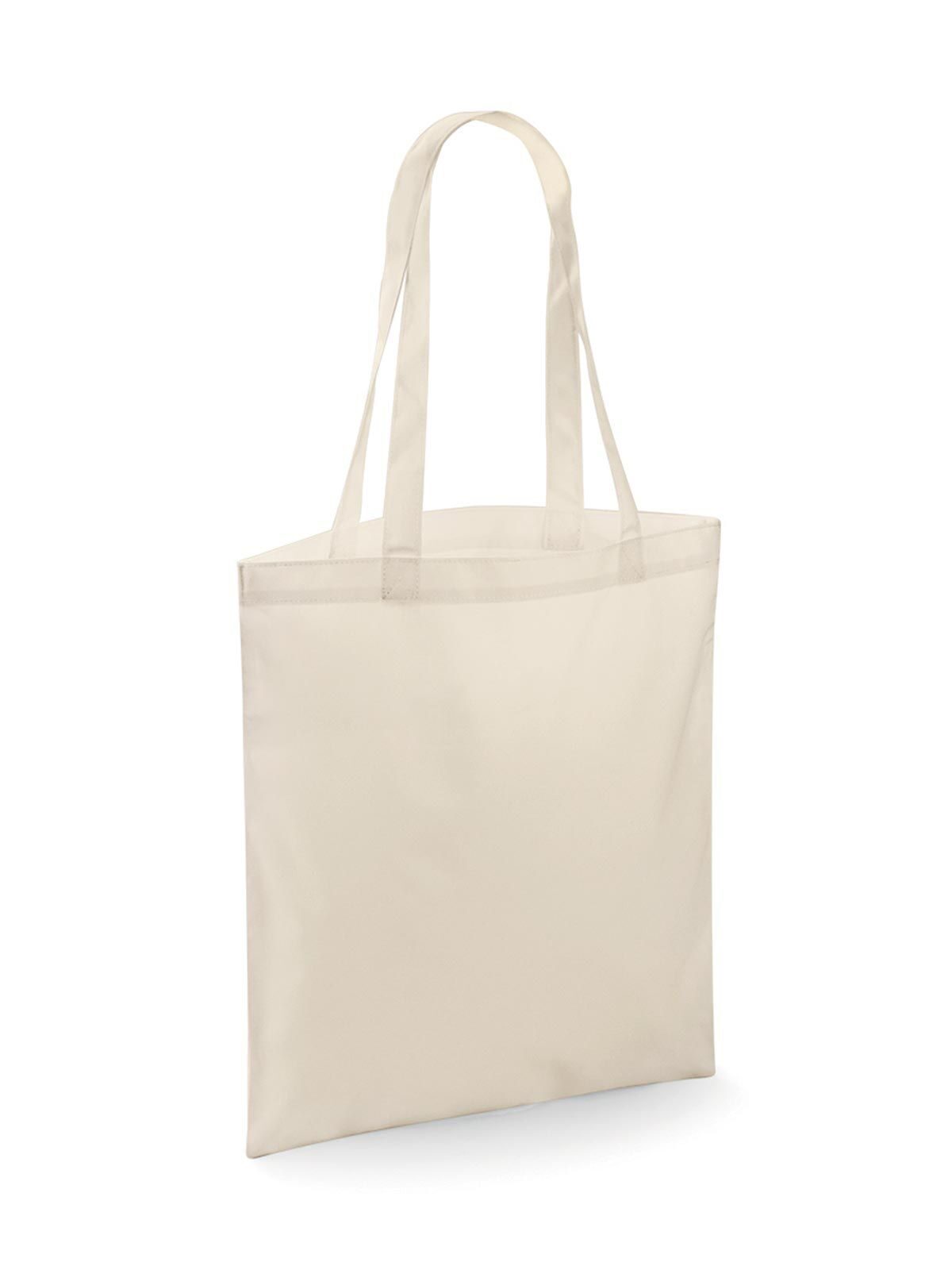 Shopper multiuso in poliestere. Lunghezza manico: 67 cm, dimensioni: 38 x 42 cm, capacita': 10 litri, area stampabile: 37.5 x 41.5 cm. Etichetta removibile.