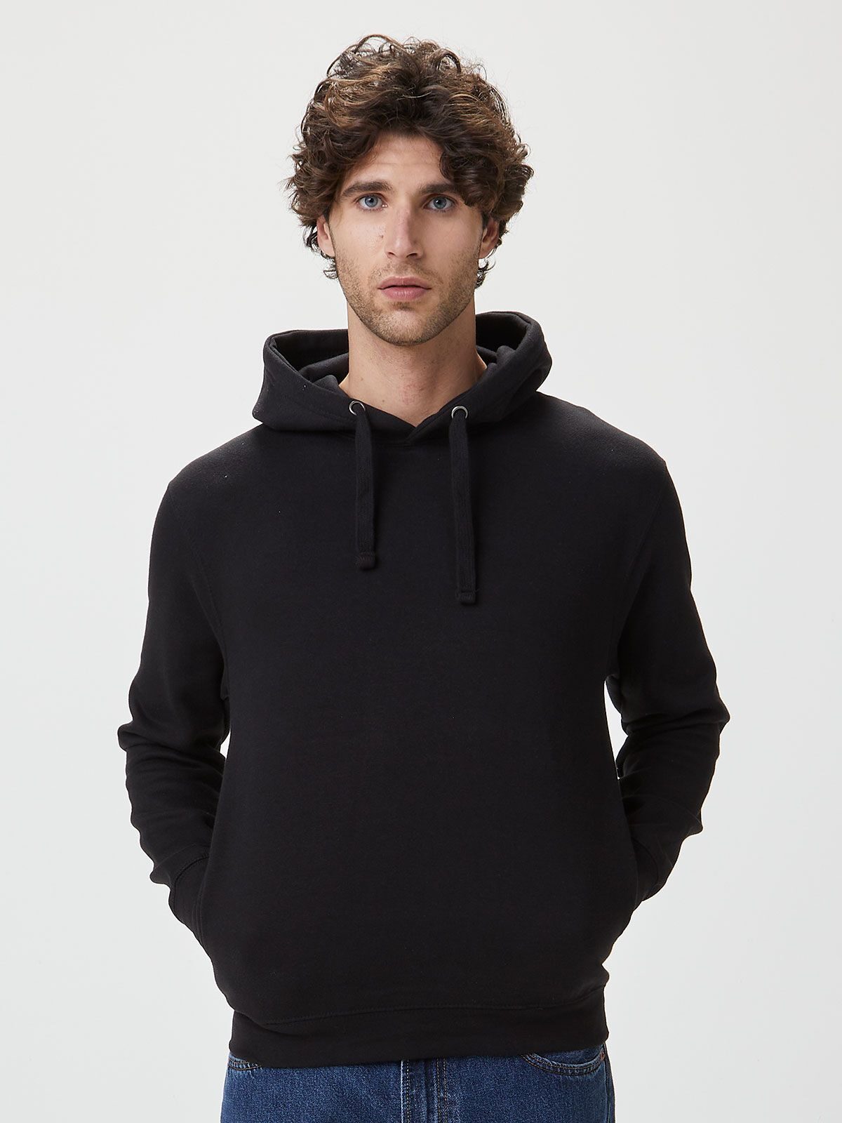 Felpa con cappuccio doppio e tasche a filetto inserite nelle cuciture laterali per una maggiore superficie di stampa. Piccola etichetta taglia al collo, etichetta composizione sul fianco. Felpata internamente. Tessuto PST: interno in poliestere ed esterno 100% cotone.