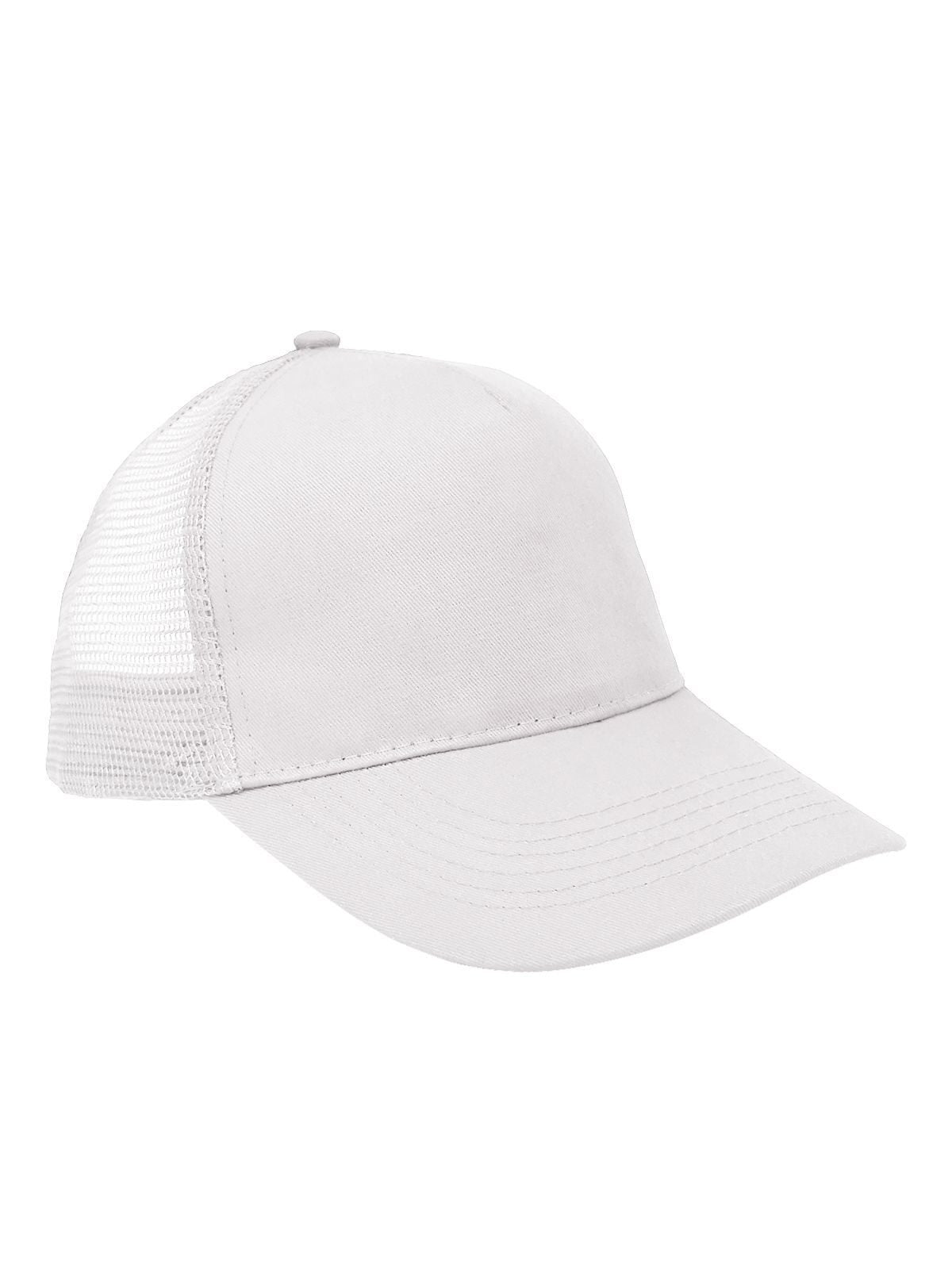 Cappellino a 5 pannelli, mesh posteriore e laterale in poliestere, pannello frontale rinforzato, visiera pre-curvata, chiusura in pvc, ideale per la stampa, 6 cuciture su visiera.