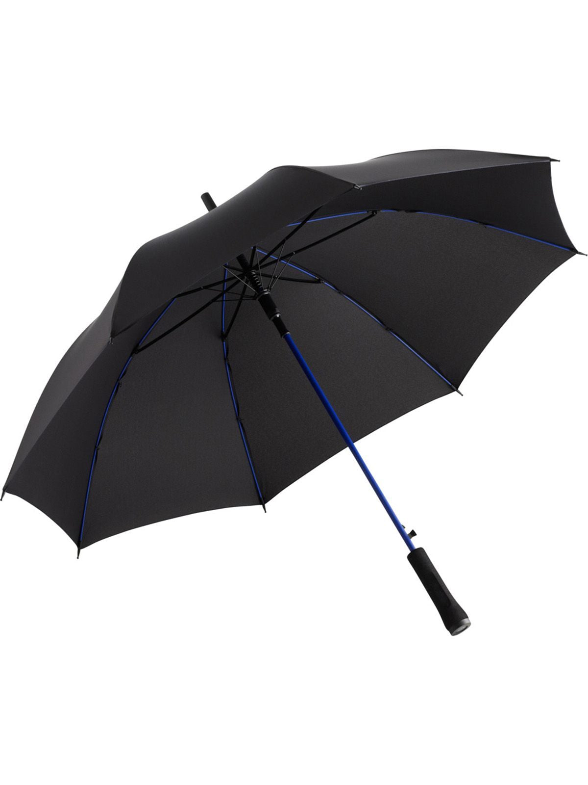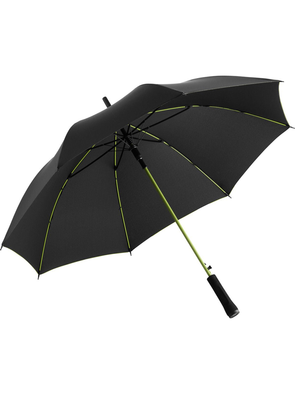 Ombrello bastone con funzione automatica per una apertura rapida. Struttura antivento per una maggiore flessibilitÃÂ e stabilitÃÂ in condizioni ventose. Stecche flessibili in fibra di vetro. Robusto fusto in acciaio con manicotto colorato, manicotto colorato, materiale in poliestere pongee certificato Standard 100 by OEKO TEX in plastica riciclata. Ecologico grazie al rivestimento waterSAVE, sottile decorazione del rivestimento grazie alle cuciture colorate, esclusiva impugnatura morbida con doppia possiblitÃÂ di personalizzazione. Anche il pulsante di apertura ha la possibilitÃÂ di essere personalizzato.