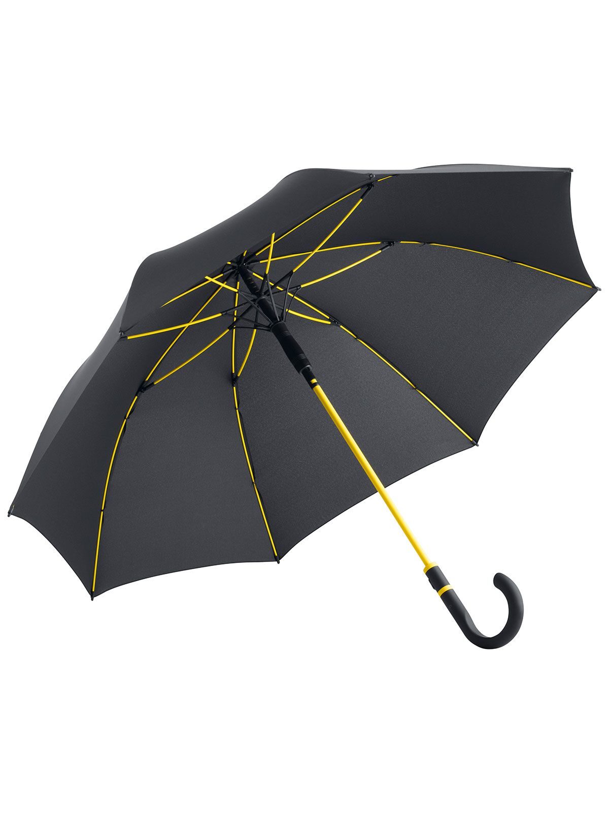 Ombrello dotato di funzione automatica per un'apertura rapida, stecche in fibra di vetro flessibili, sistema Windproof, bastone con rivestimento in plastica fatta di poliestere riciclato, con certificazione STANDARD 100 by OEKO-TEX, ecologico grazie al materiale della fodera waterSAVE, impugnatura soft-touch con occhielli colorati, pulsante di azionamento integrato. Diametro: 112 cm, lunghezza da chiuso: 89 cm, 8 pannelli.