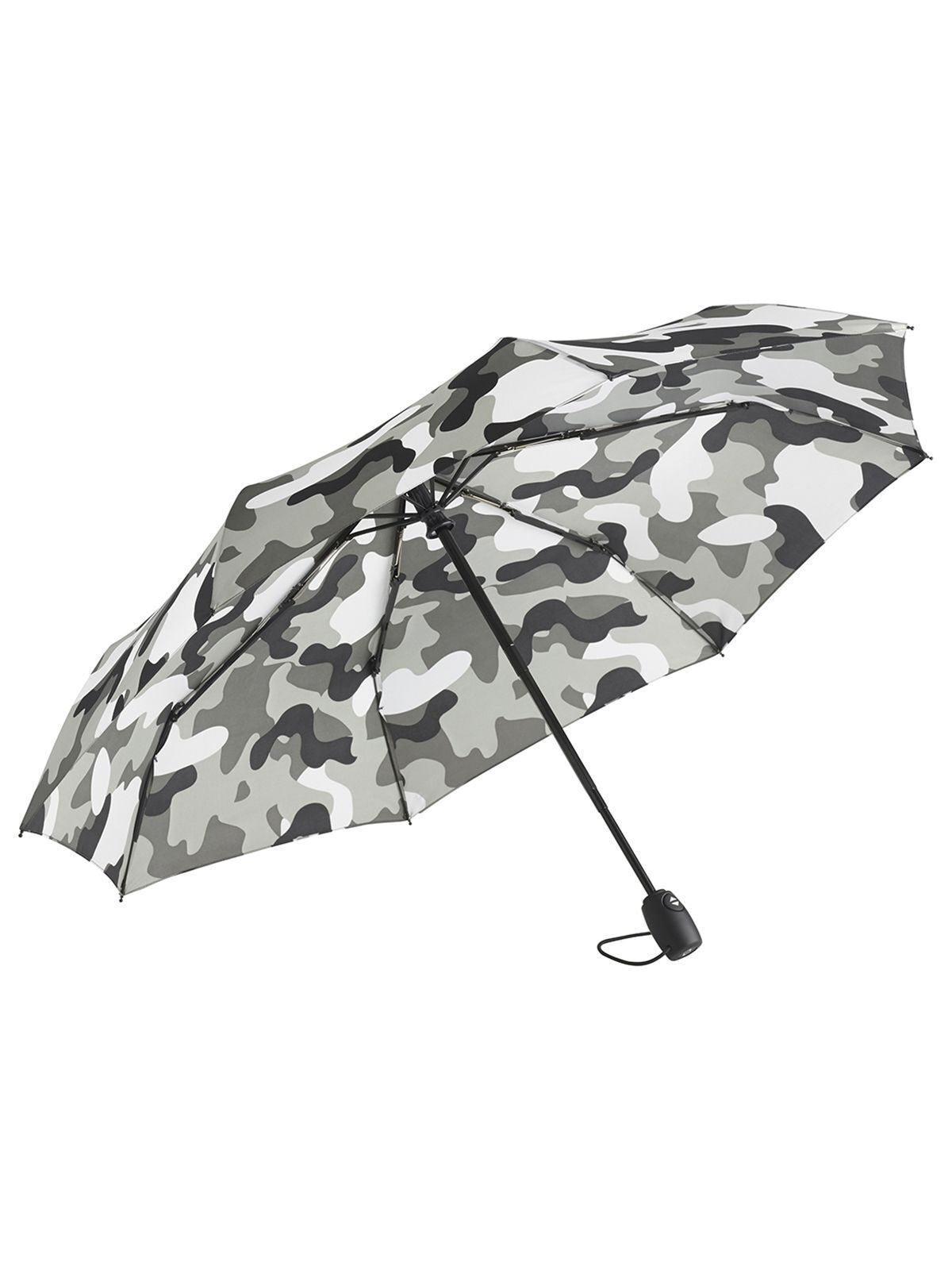 Manico: Plastica , Asta: Acciaio. Ombrello tascabile con doppio automatismo per apertura e chiusura rapida, motivo mimetico, sistema Windproof. Diametro: 97 cm, lunghezza da chiuso: 28,50 cm , 8 pannelli.