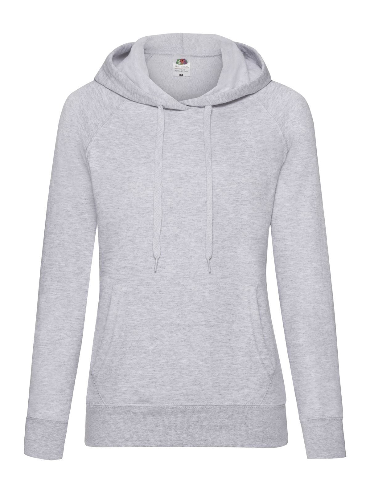 Felpa leggera sgarzata, maniche raglan, orlo inferiore e polsini in costina cotone/Lycra. Cappuccio con cordino in tinta, tasca anteriore a marsupio, leggermente sfiancata, struttura con cuciture laterali.