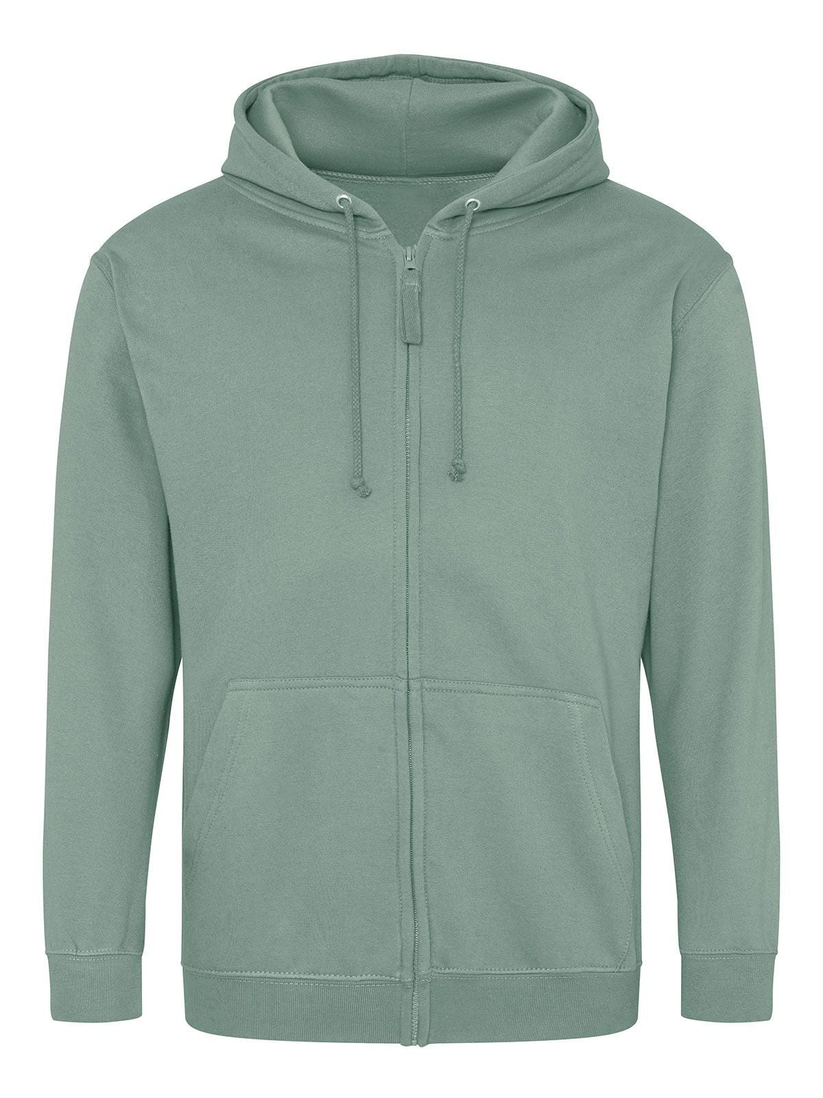 Felpa con cappuccio e zip intera coperta, doppie cuciture e cappuccio a doppio strato, tasca a marsupio, polsini e orlo a coste, etichetta strappabile. Produzione certificata WRAP (Worldwide Responsible Accredited Production)