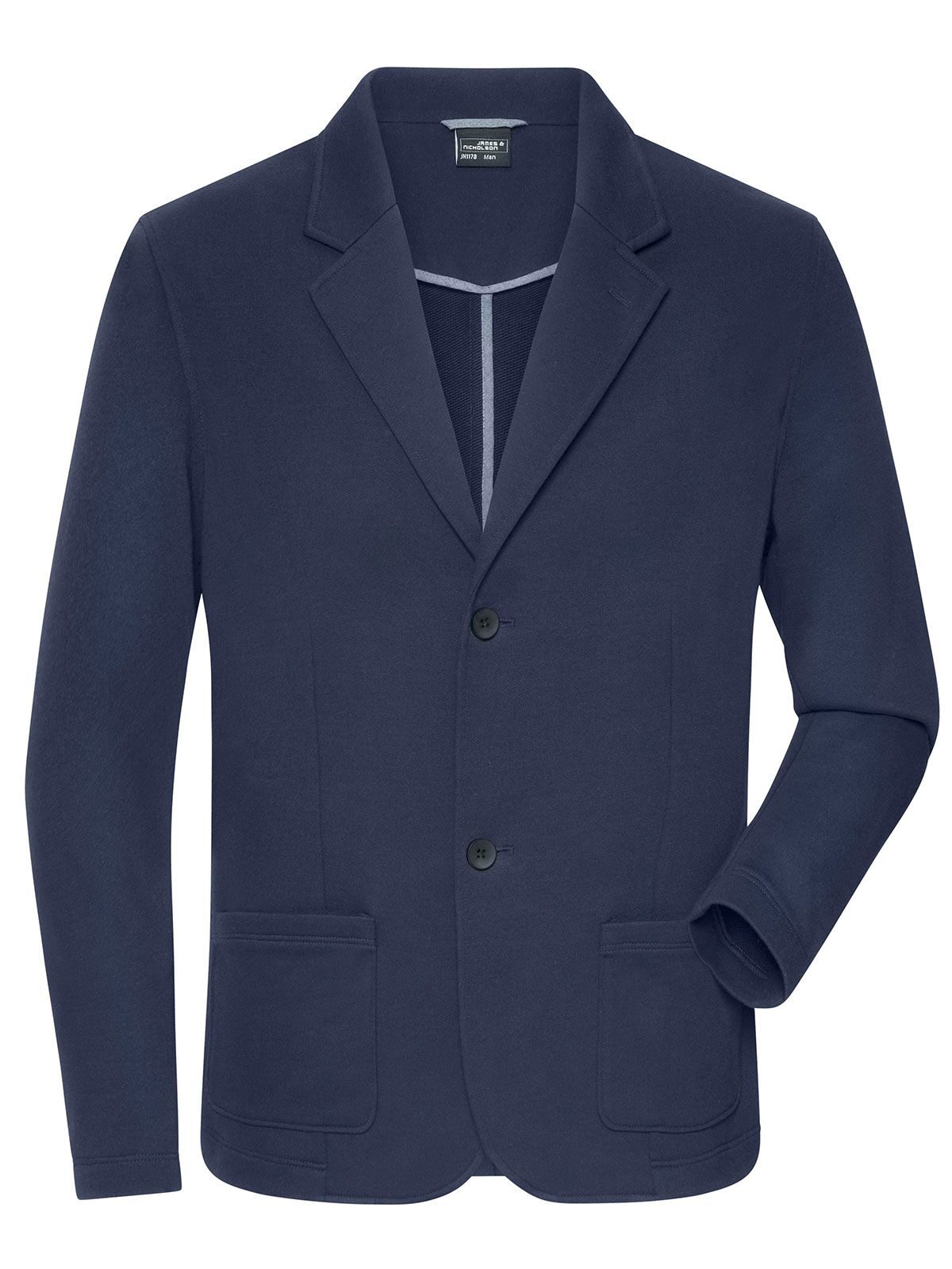 290 g/m². Giacca qualità French-Terry, non foderato. Cuciture davanti e dietro per un taglio sagomato, due tasche, due bottoni. Classico colletto risvoltato con asola, pinces sul fronte, cucitura centrale sul retro con spacco, polsini con spacchetto e chiusura a tre bottoni.