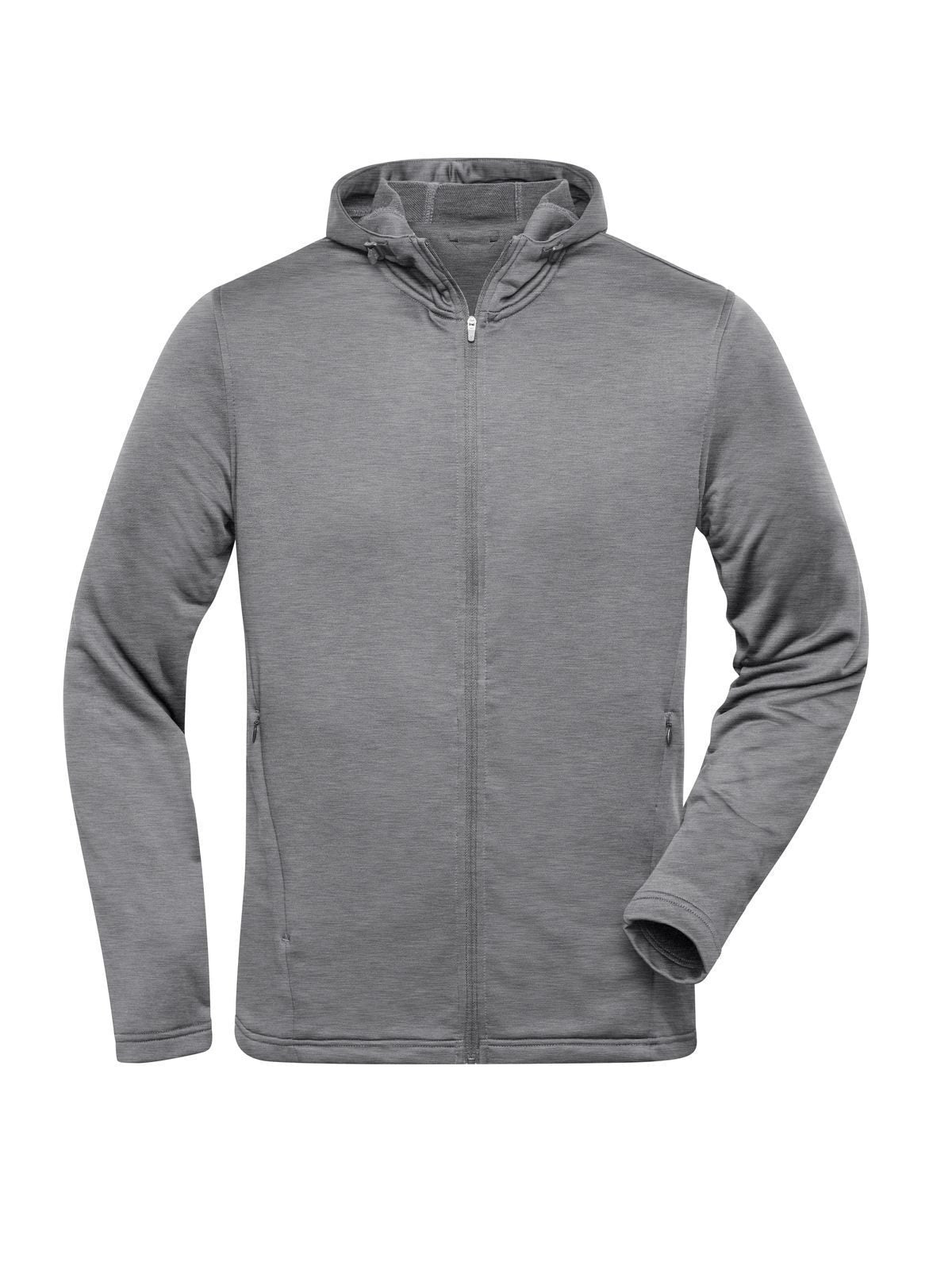 Felpa con cappuccio regolabile, tessuto french terry easy-care, due tasche laterali con zip, due tasche interne, zip YKK.
