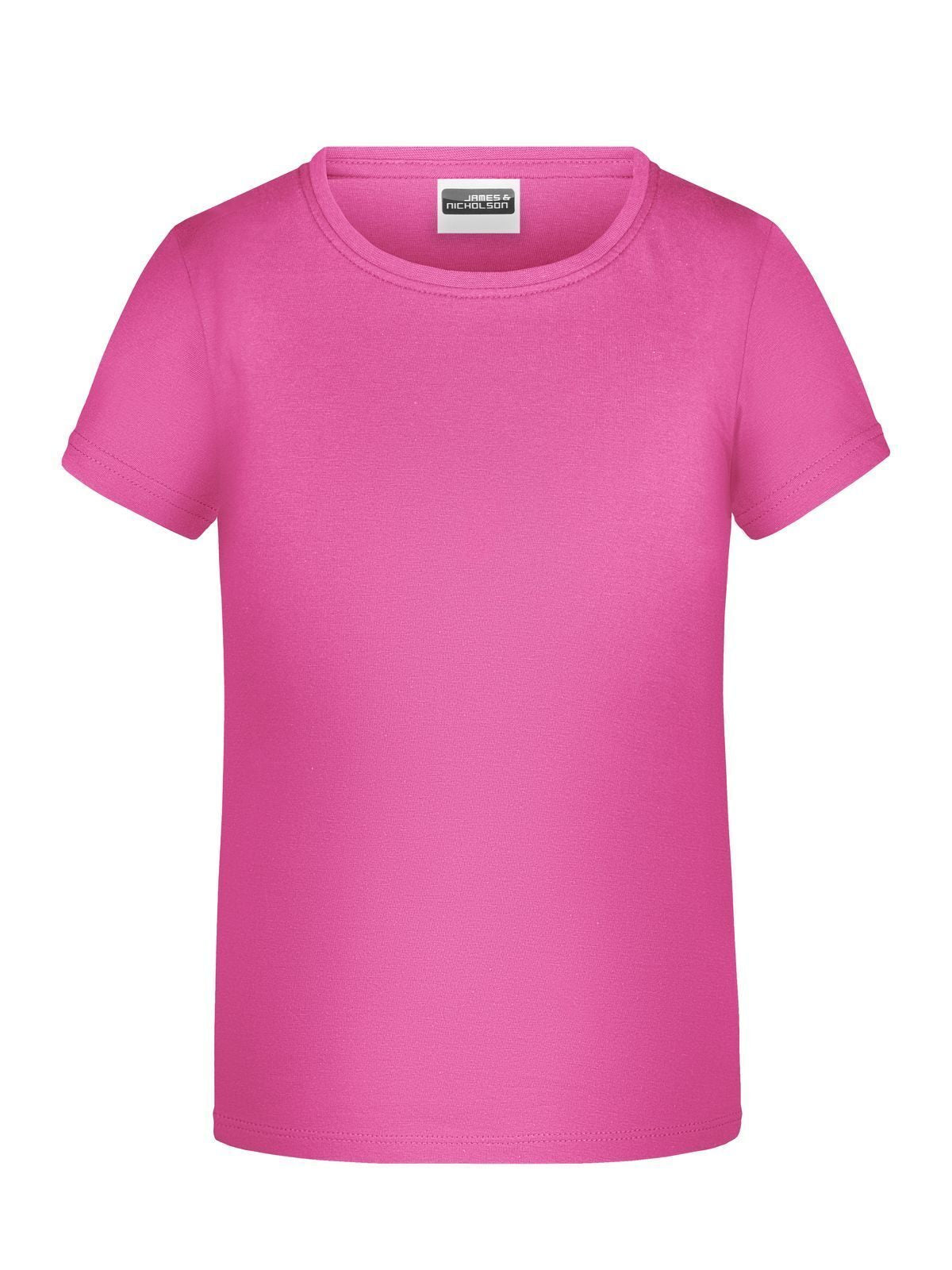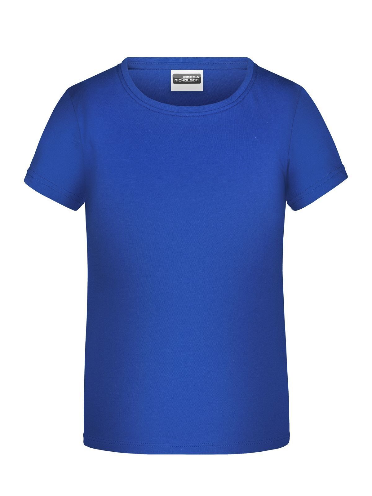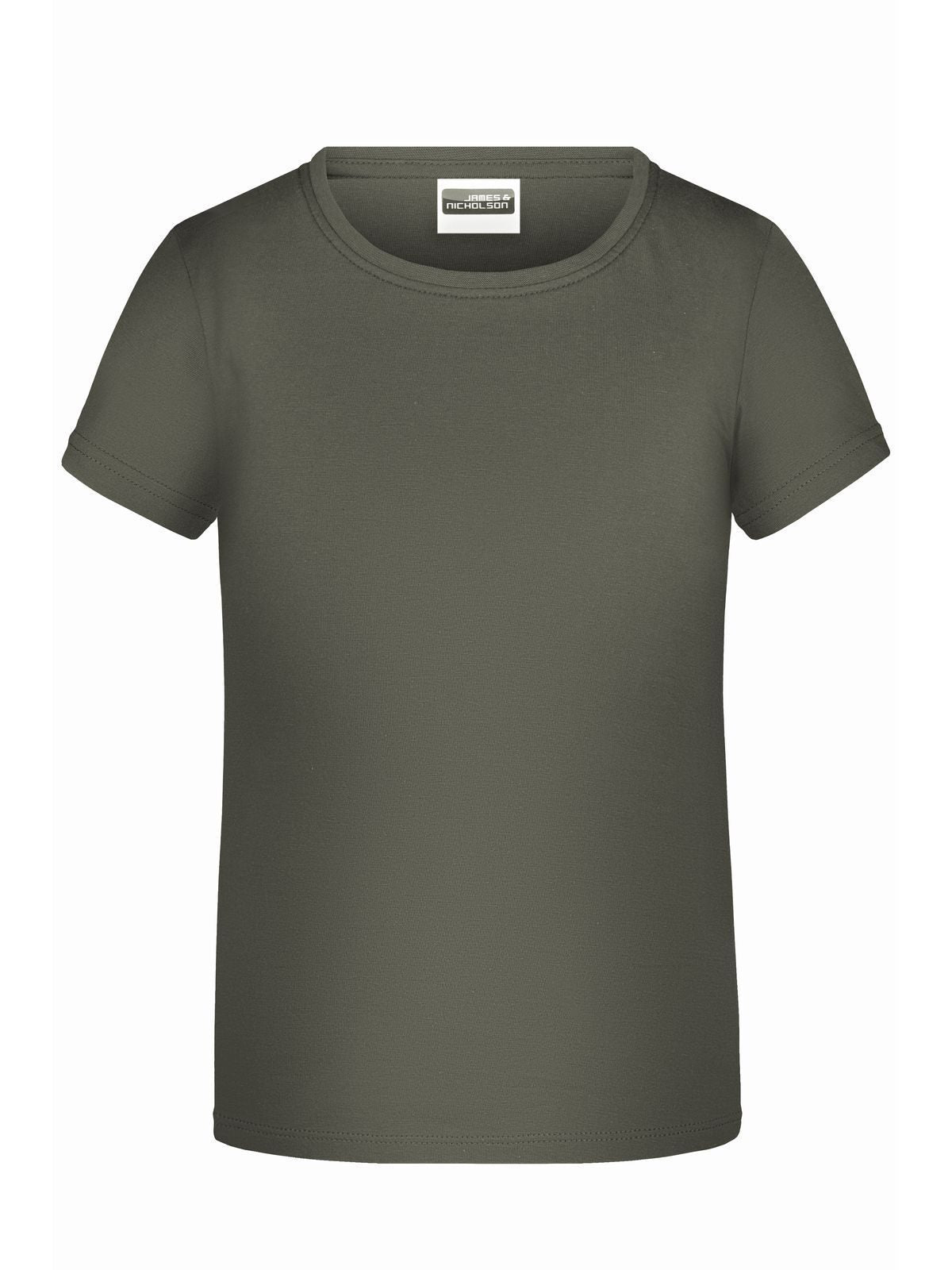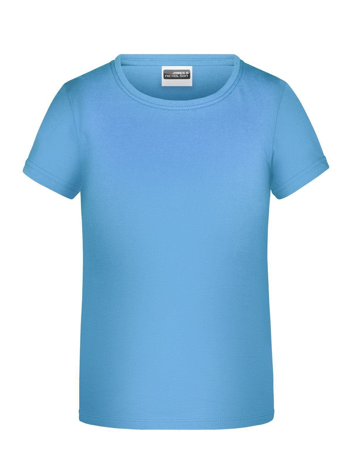single jersey. T-shirt girocollo da bambino con elastico al collo in elastane, leggermente sfiancata, etichetta removibile. Busto tubolare.