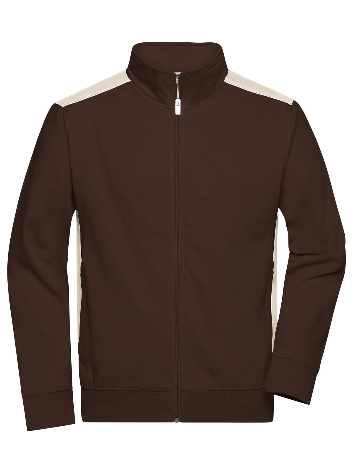 Felpa con maniche set-in, resistente, easy care, felpata internamente, inserti contrastanti ai lati e sulle spalle, costina in elastan su maniche e vita, 2 tasche laterali con cerniera nascosta, lavabile a 60°C, adatta ad asciugatrice, struttura con fasce laterali.
