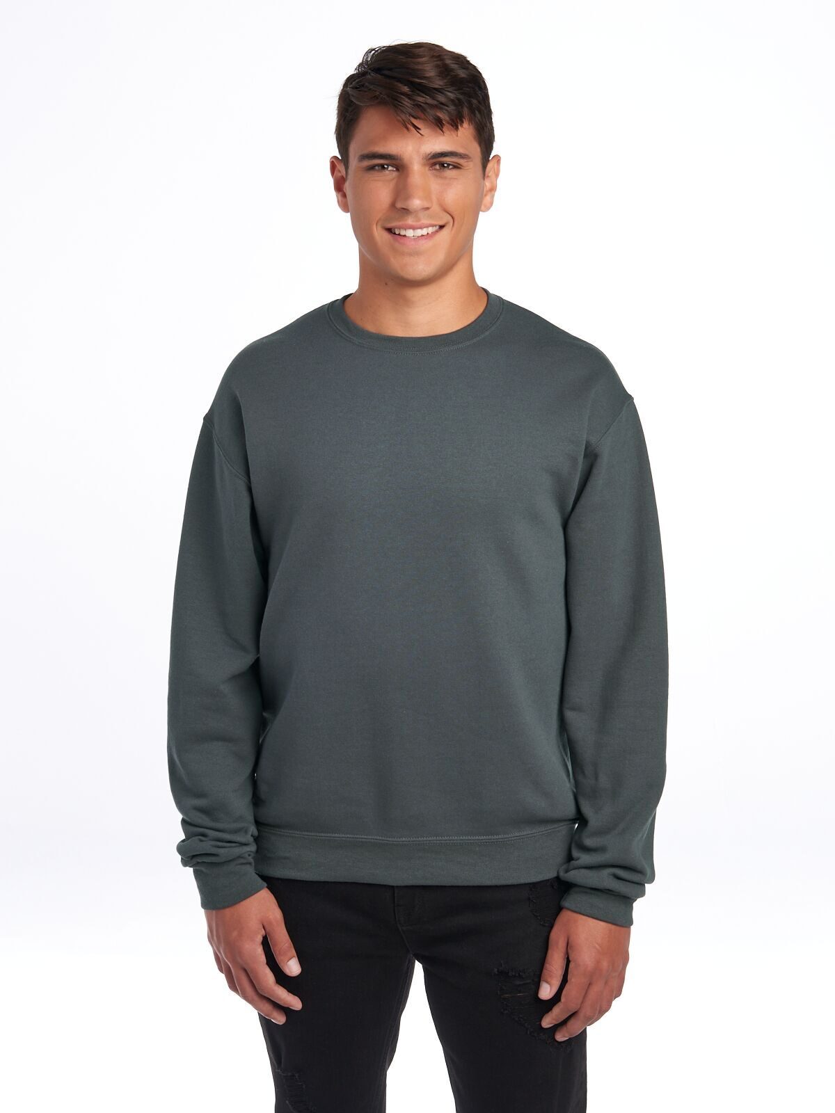 Felpa girocollo con maniche set-in in tessuto NuBlend resistente ai pelucchi, realizzata con cotone di origine sostenibile coltivato negli Stati Uniti, alta densità di punti per una tela di stampa liscia, polsini e cintura a costine con spandex per maggior elasticità , cuciture a due aghi su collo, giromanica e cintura. Etichetta removibile.