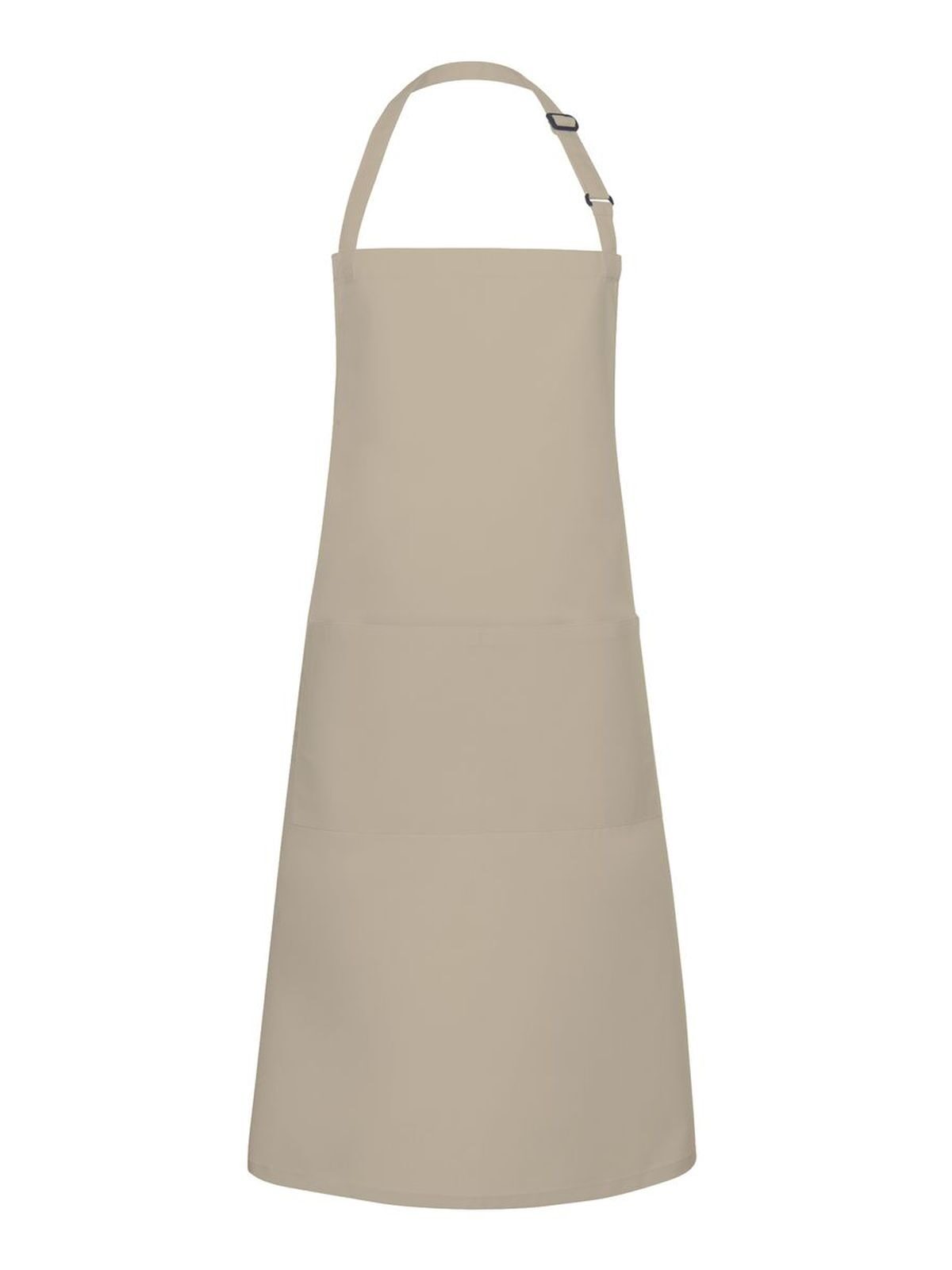 Grembiule con pettorina e lacci dello stesso tessuto, cucitura rinforzata, laccio della pettorina con fibbia per regolazione continua della lunghezza fino a 70 cm, tasca applicata con 2 scomparti (40 x 20 cm) Misura 75x90cm.