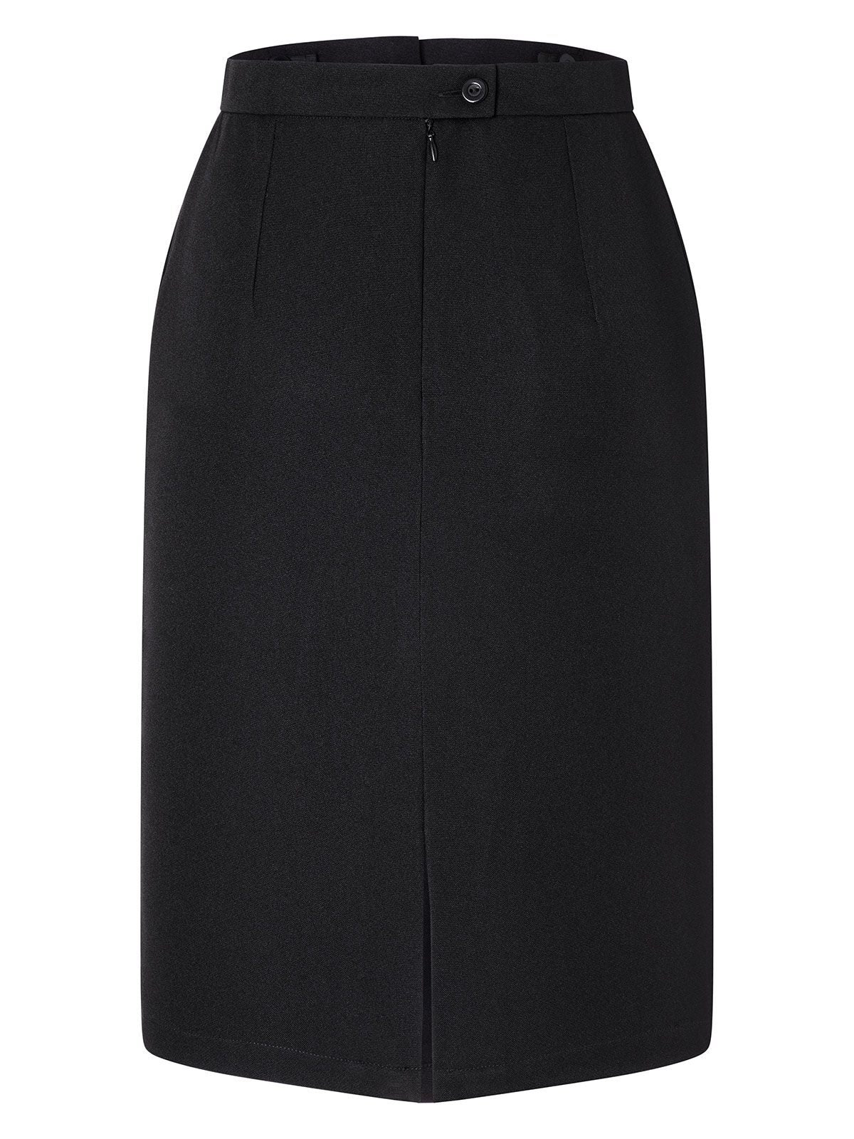 Gonna da cameriera, cintura regolabile con banda elastica e bottoni, spacco di 25 cm nella parte posteriore, due tasche laterali.