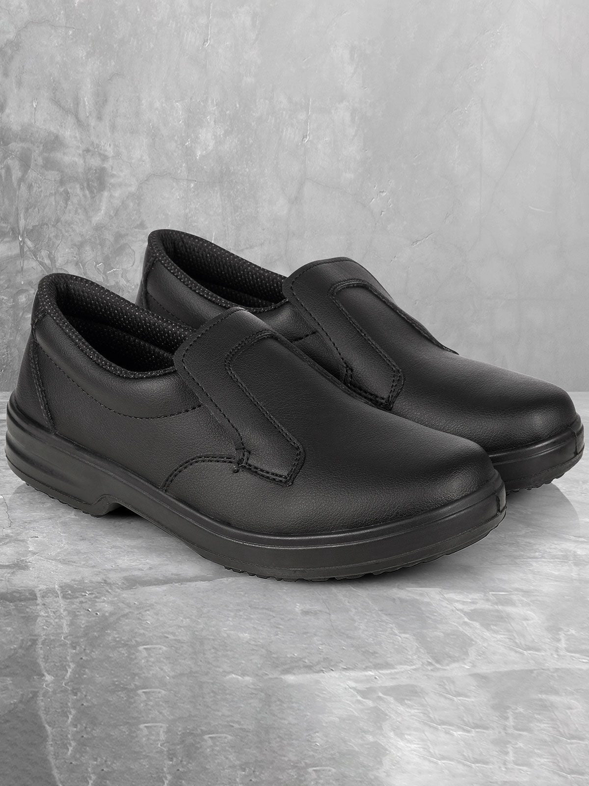 Scarpe unisex, leggere e traspiranti, con rivestimento antibatterico permanente, soletta in polietilene e suola in poliuretano, antiscivolo, con assorbimento dell'energia in caso di sovraccarico, lavabili fino a 40°. EN ISO 20347:2012, O1-FO-SRC.