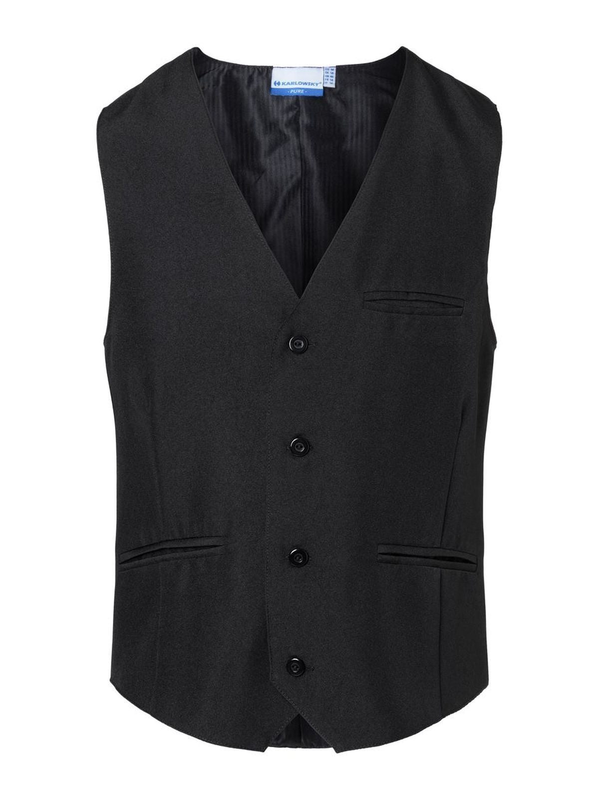 Gilet uomo basic, taglio ampio e confortevole, pinces sul busto, due tasche laterali, una tasca interna, quattro bottoni.
