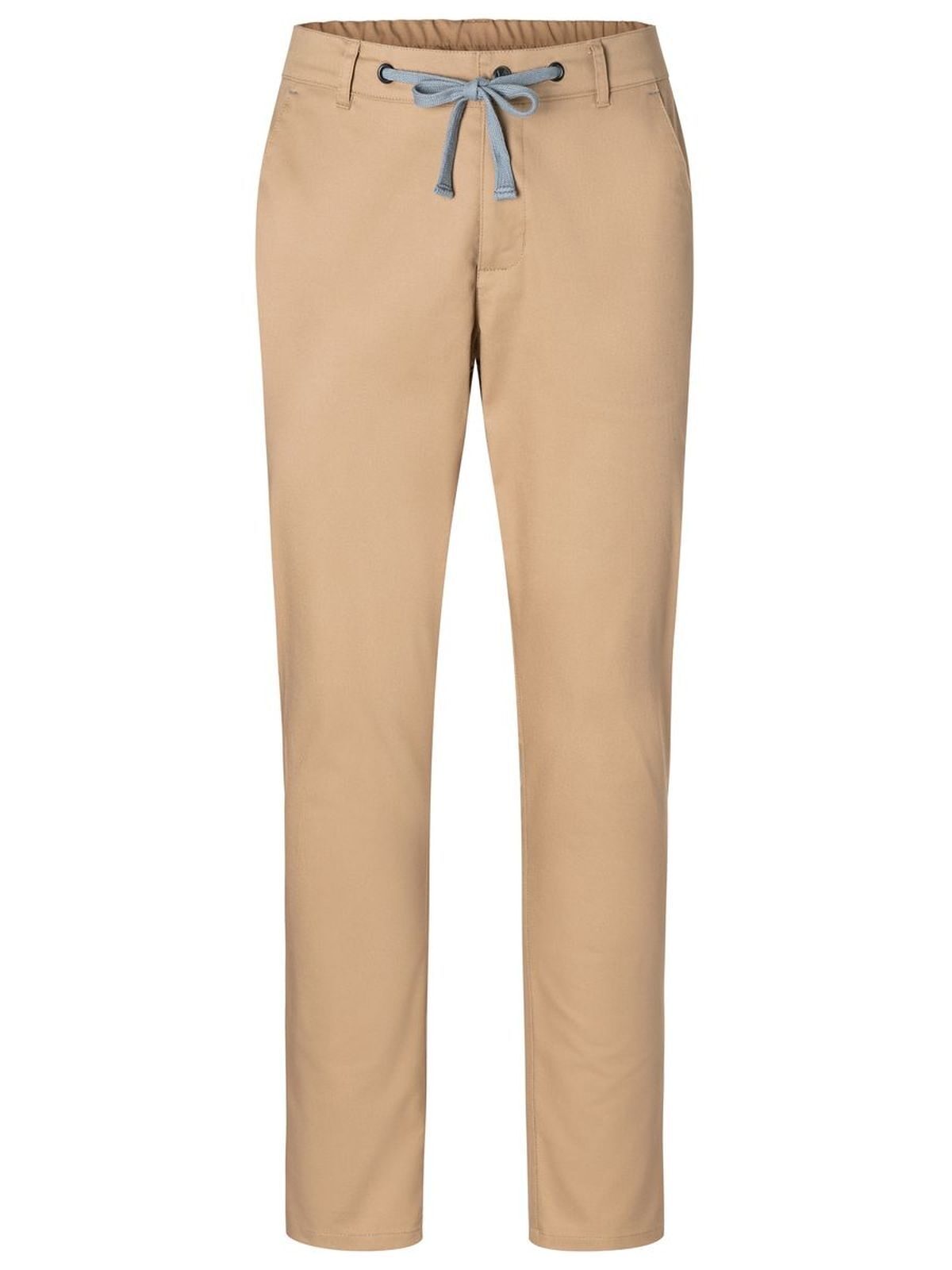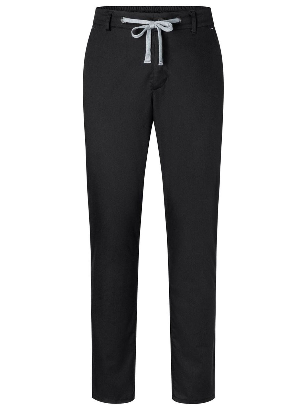 Pantaloni informali da lavoro uomo, in leggero tessuto elasticizzato, taglio aderente e cordoncino in vita, orli stretti, 2 tasche laterali e 2 tasche sul retro con bottoni, passanti della cintura.