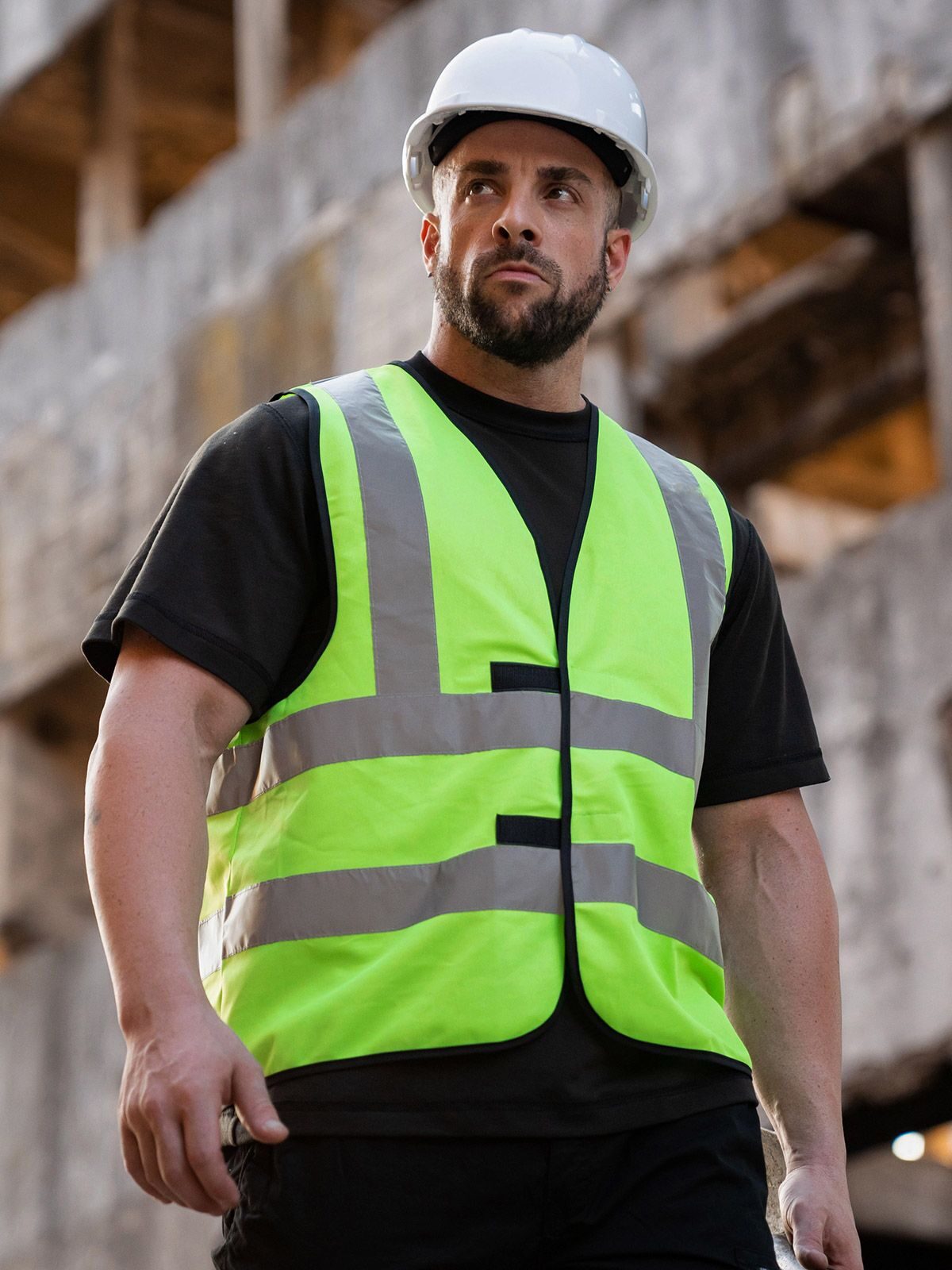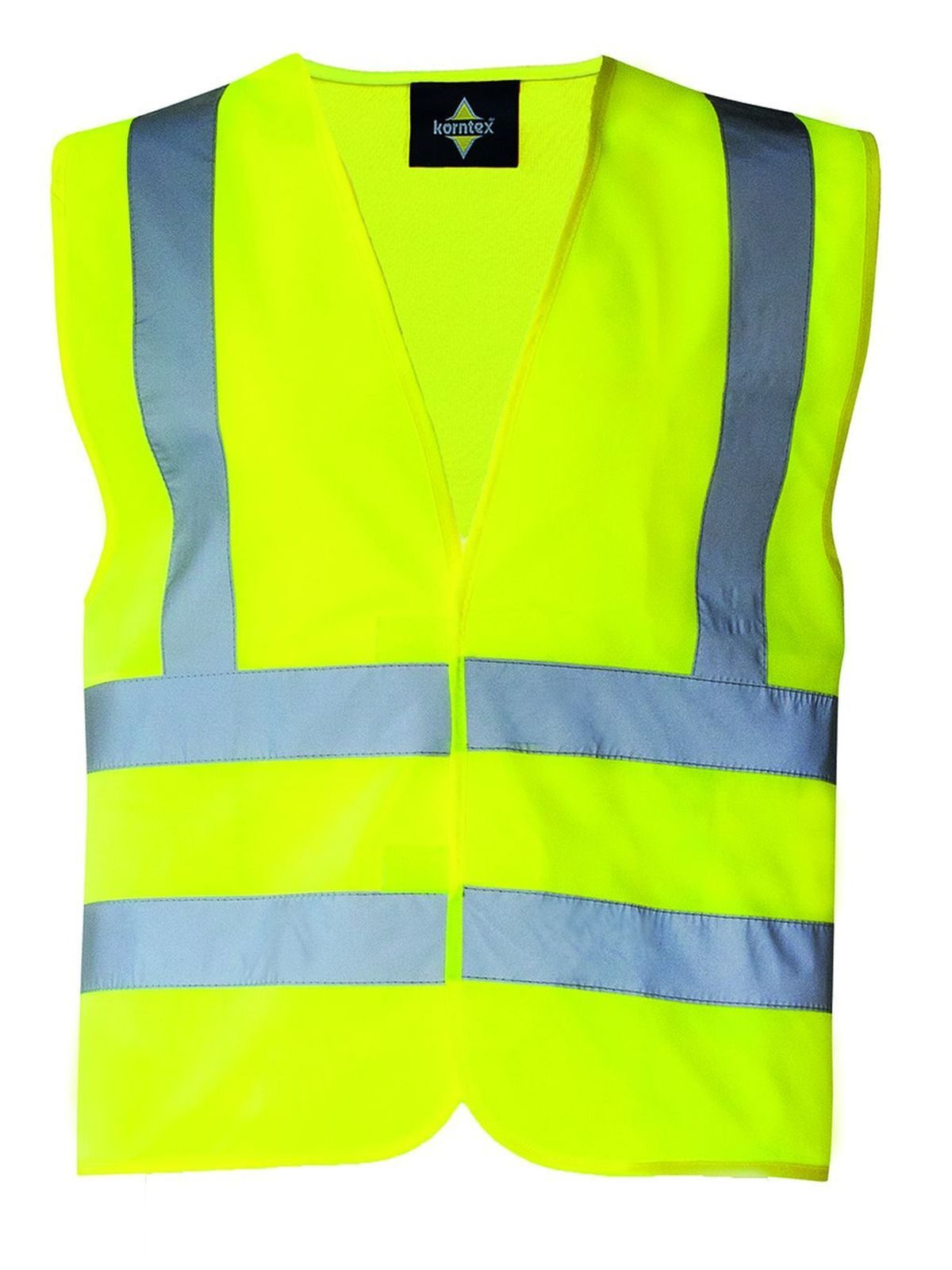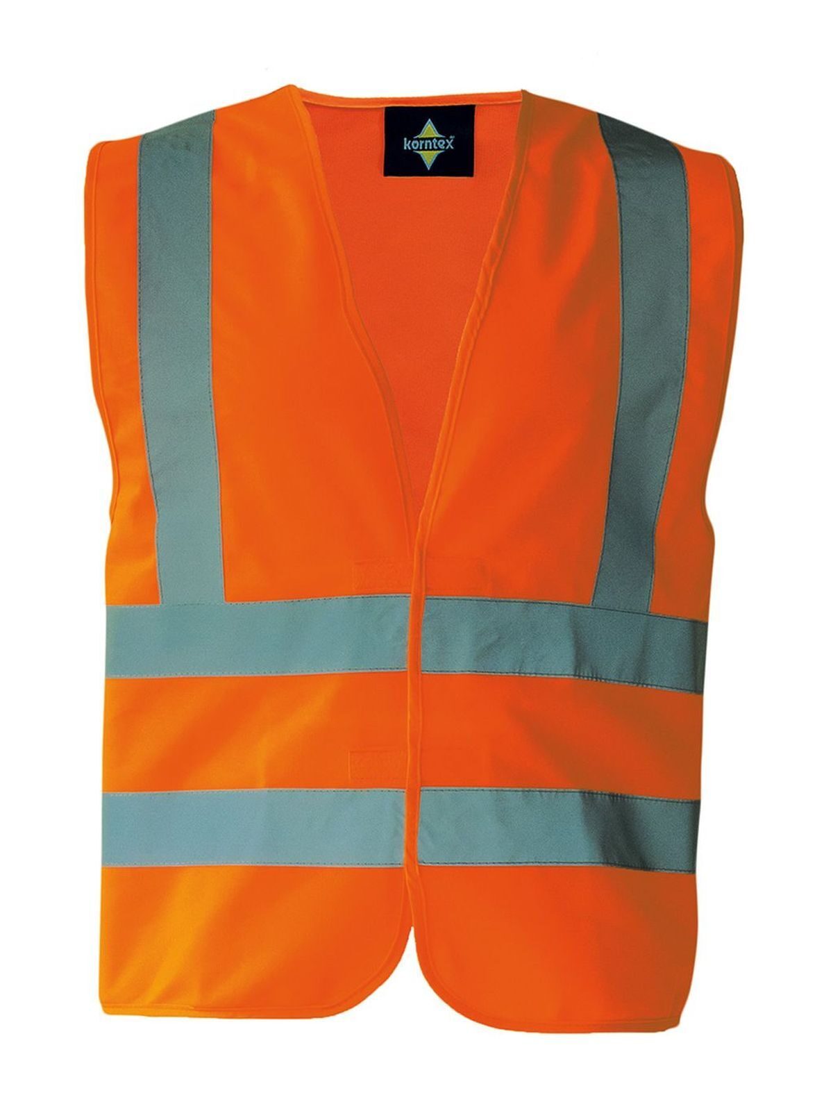 Gilet di sicurezza con quattro fasce riflettenti. Colori giallo e arancione conformi alla normativa EN ISO 20471:2013 + A1:2016, Oeko-Tex® Standard 100, colore arancione conforme anche alla normativa GO/RT 3279, altri colori non conformi alla normativa EN ISO 20471:2013 + A1:2016. Due fasce riflettenti larghe 5 cm intorno al corpo, due fasce riflettenti larghe 5 cm perpendicolari alle spalle, misura regolabile grazie alla doppia chiusura con velcro, durata delle proprietà riflettenti in conformità alla normativa EN per 25 cicli di lavaggio a 40°C. Confezionato singolarmente in una pratica borsa in polietilene. Classe 1 da S a XXL, classe 2 da 3XL a 7XL.