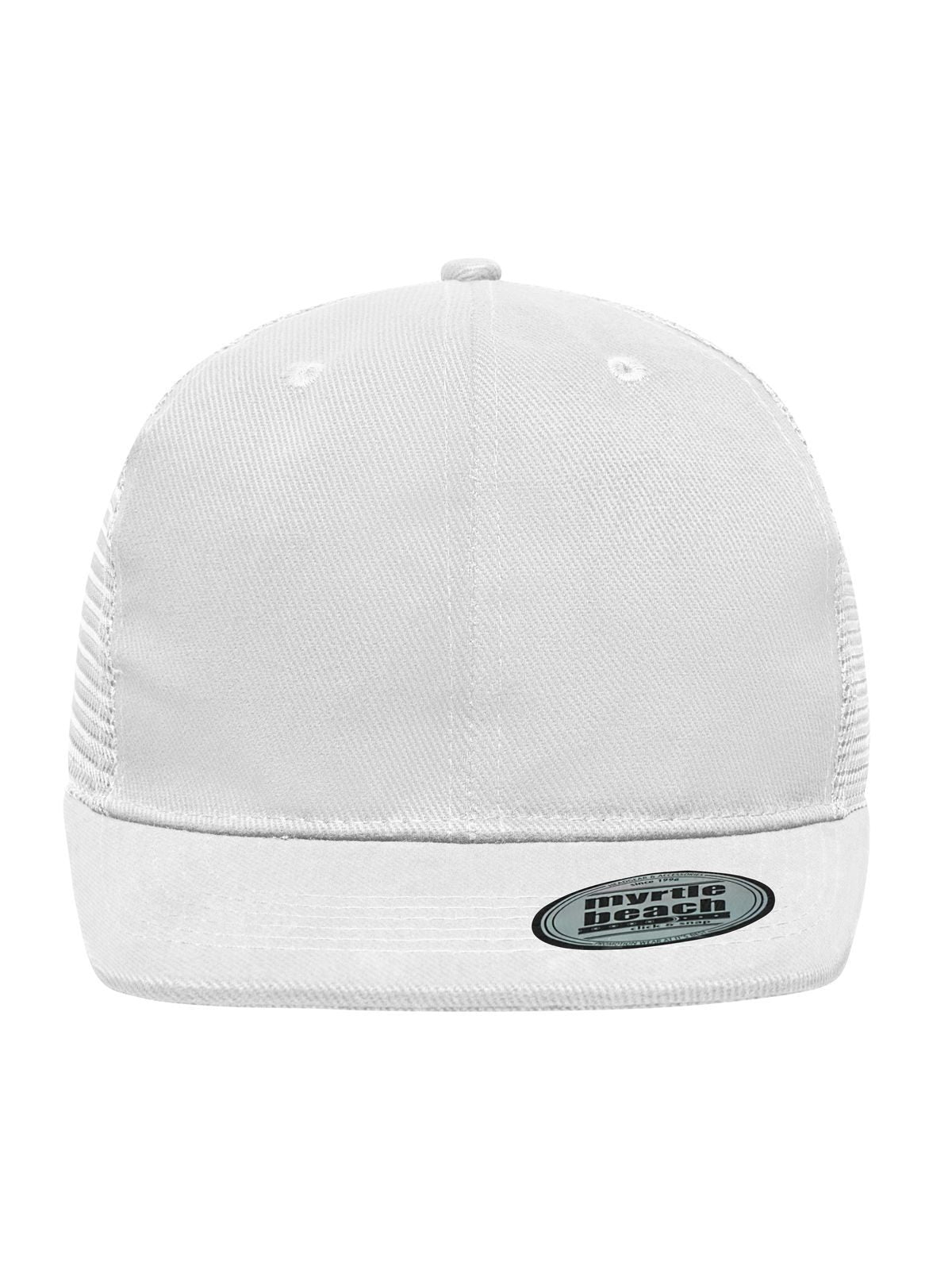 Cappello a rete a 6 pannelli con visiera piatta 6 cuciture decorative sulla visiera, 6 fori di aerazione ricamati, Fascetta tergisudore in cotone, Etichetta sulla visiera, Regolazione taglia con chiusura click & snap , Cotone spazzolato.