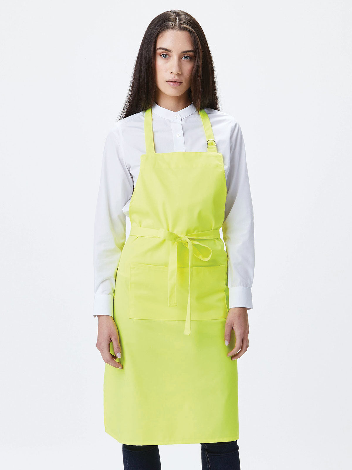 Grembiule con pettorina, ampia tasca frontale, regolabile con fibbia di metallo.