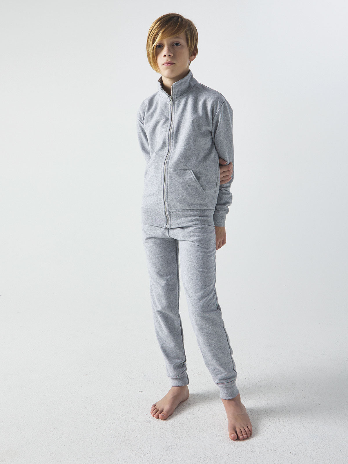 Pantaloni lunghi non felpati, due tasche laterali, fascia elastica in vita e alle caviglie.