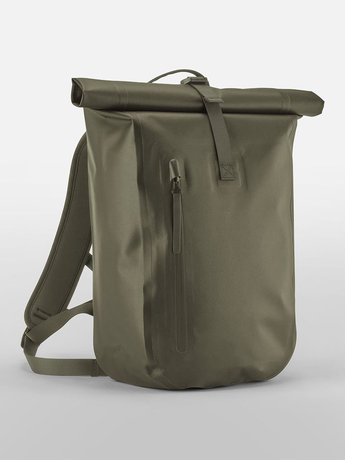 Zaino con chiusura roll-top, tessuto impermeabile, scomparto principale impermeabile, tasca frontale con zip. Dimensioni: 28x12x42cm, Capacità : 14 litri. Etichetta strappabile.