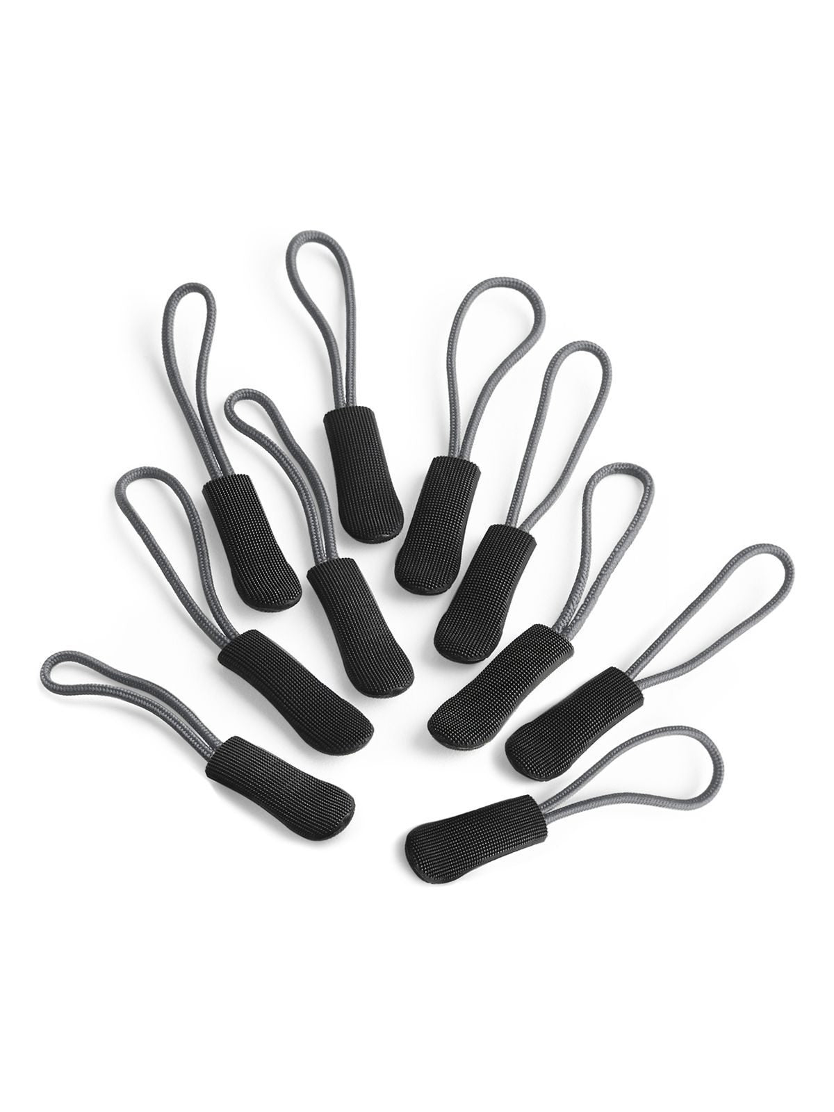 Ganci con struttura antiscivolo, 10 estrattori zip per set. Dimensioni: 1x7 cm.