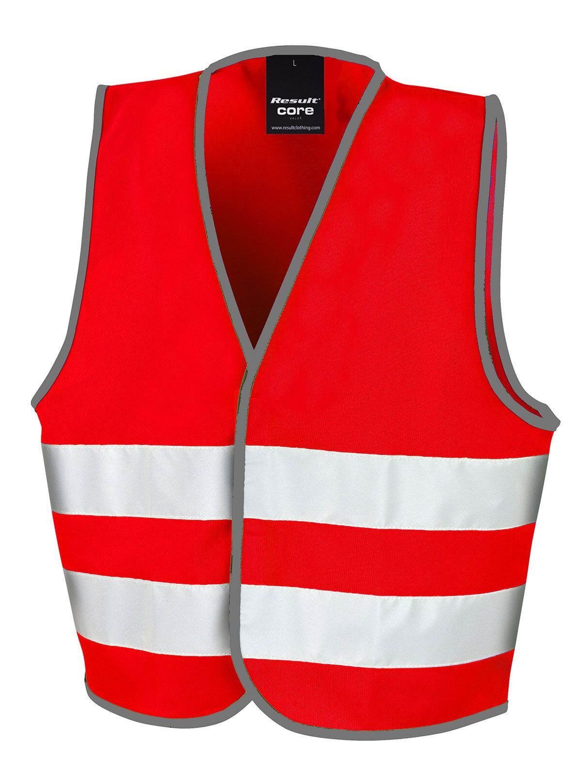 Gilet ad alta visibilita' per bambini, strisce di sicurezza cucite (50 mm), orli di colore grigio, chiusura a strappo