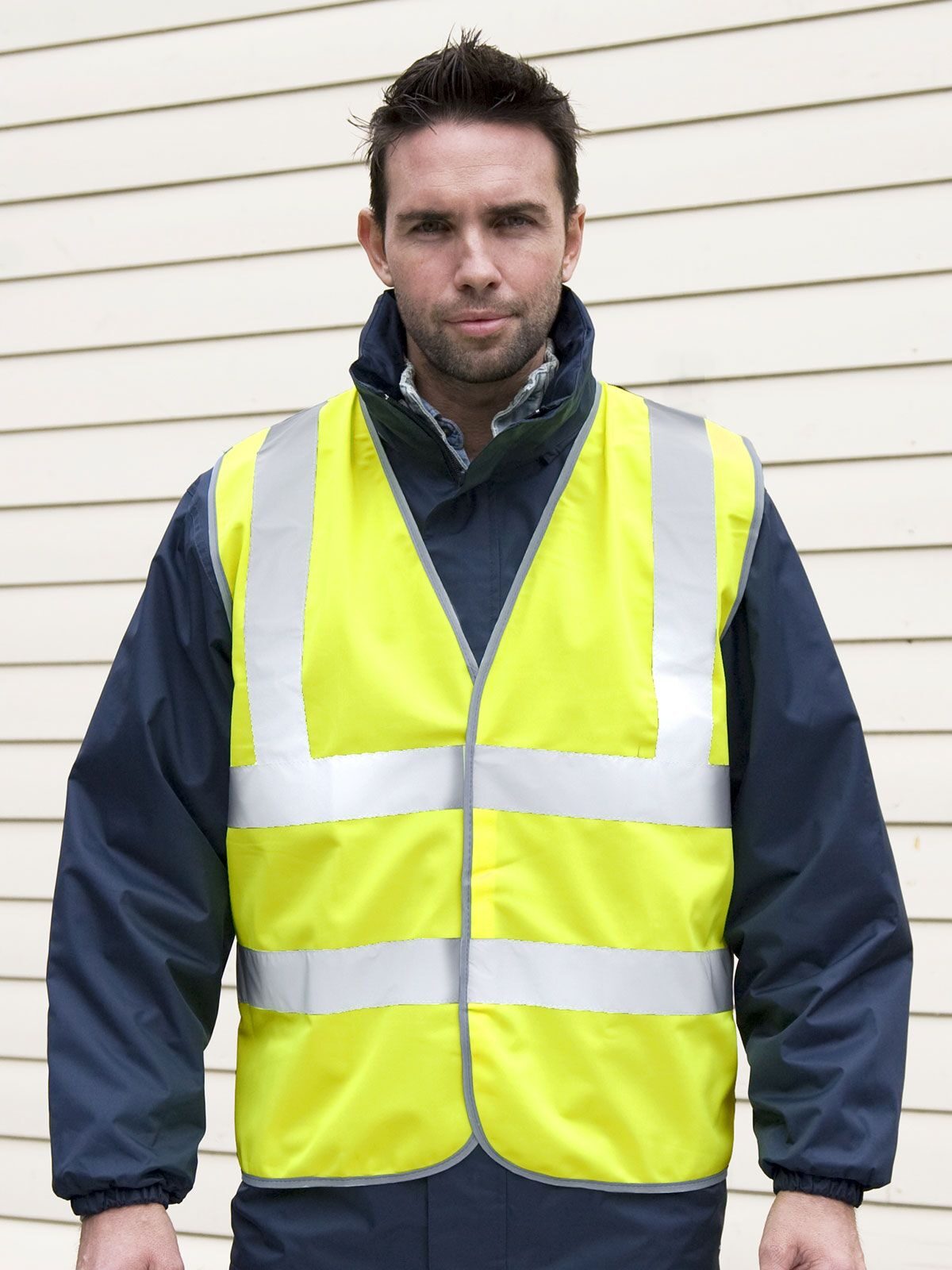 Gilet ad alta visibilità unisex, strisce di sicurezza verticali e orizzontali, vestibilità ampia che permette di indossarlo sopra ad altri indumenti, profili in poliestere grigio, strisce di sicurezza cucite (50 mm). Chiusura singola a strappo. EN ISO 20471:2013 Classe 2 GO/RT 3279 ISSUE 8:2013 Class 2 (Solo arancione) Conforme alla direttiva 89/686/EEC