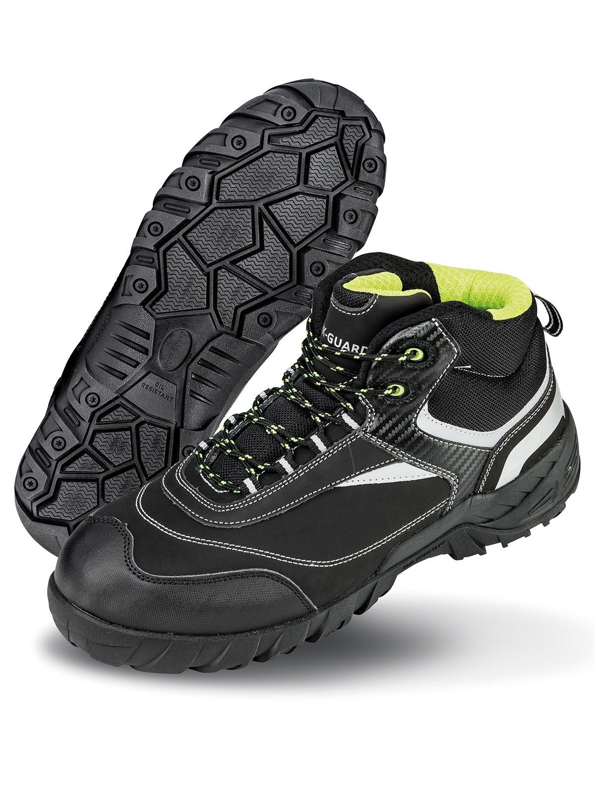 Scarpe con puntale in acciaio, proprietà antiscivolo e antistatiche, dettagli riflettenti, caviglia e linguetta imbottita, calzatura solida e resistente. EN ISO 20345:2011 S3 SRC.