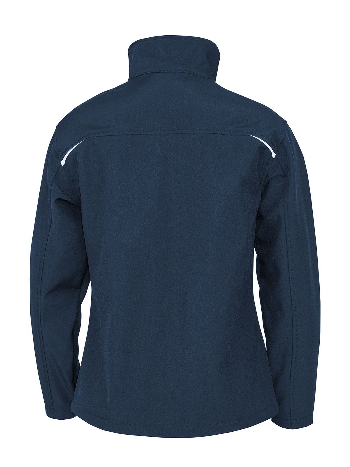 Tessuto interno: 100% poliestere riciclato micropile. Giacca softshell 3 strati idrorepellente con zip YKK e protezione per il mento, dettagli riflettenti sulle spalle fronte e retro, cuciture decorative fronte e retro, tasche frontali con zip, colletto alto, PFOA-free.