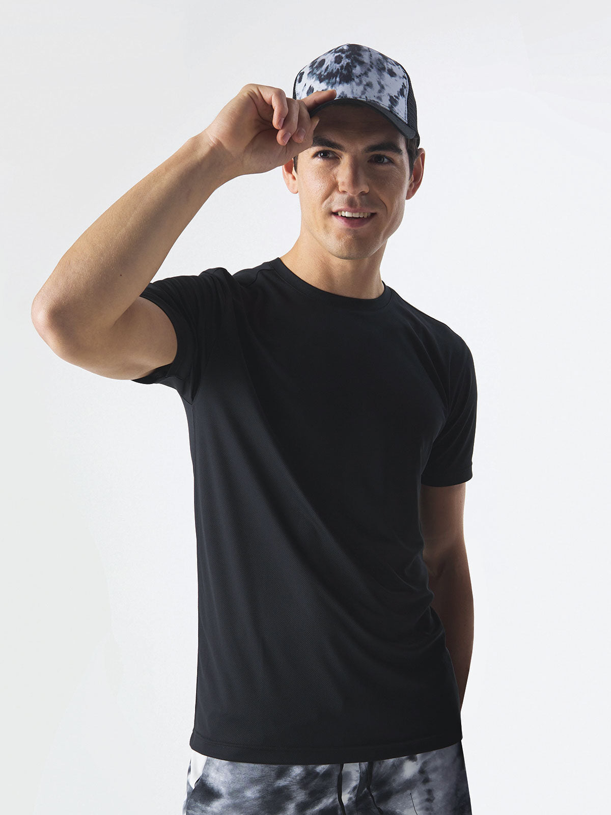 T-shirt genderless maniche corte set-in, tessuto quick-dry traspirante e nastro parasudore al collo. Struttura con cuciture laterali. Etichetta removibile.