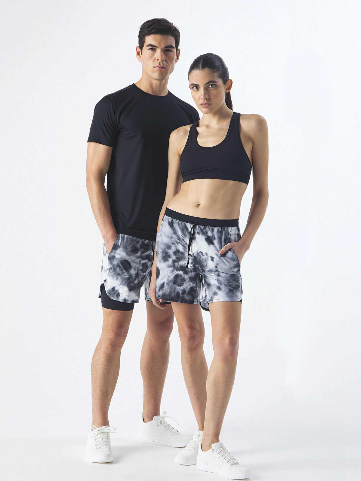 Pantaloncini genderless con elastico in vita con coulisse, slip integrato, due tasche frontali e taschino posteriore con zip, elemento riflettente. Etichetta strappabile.
