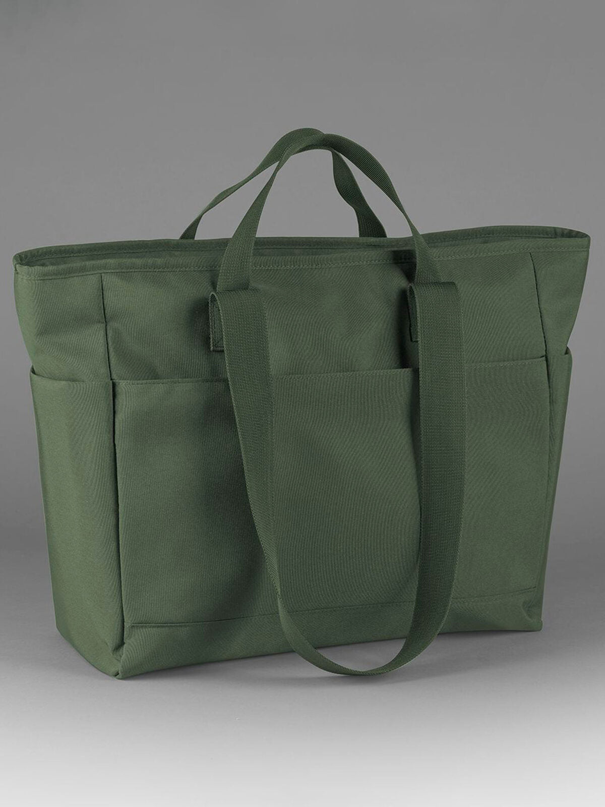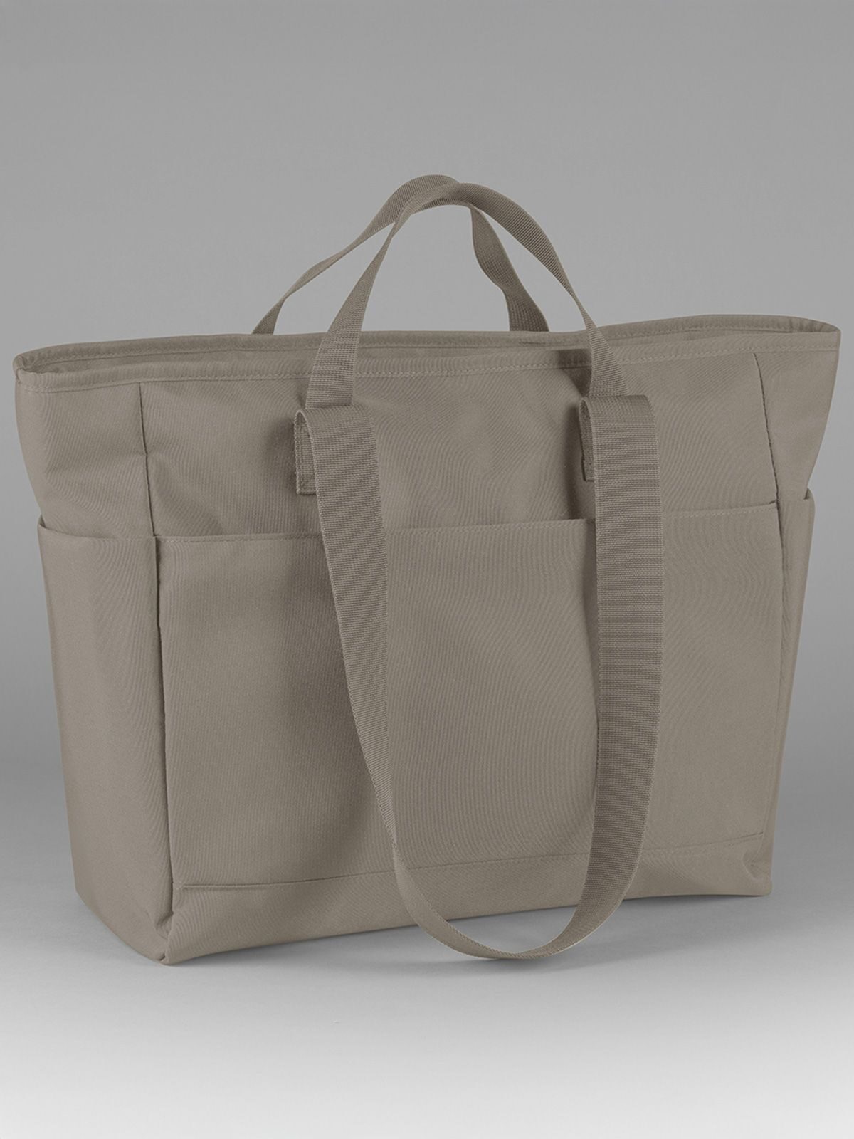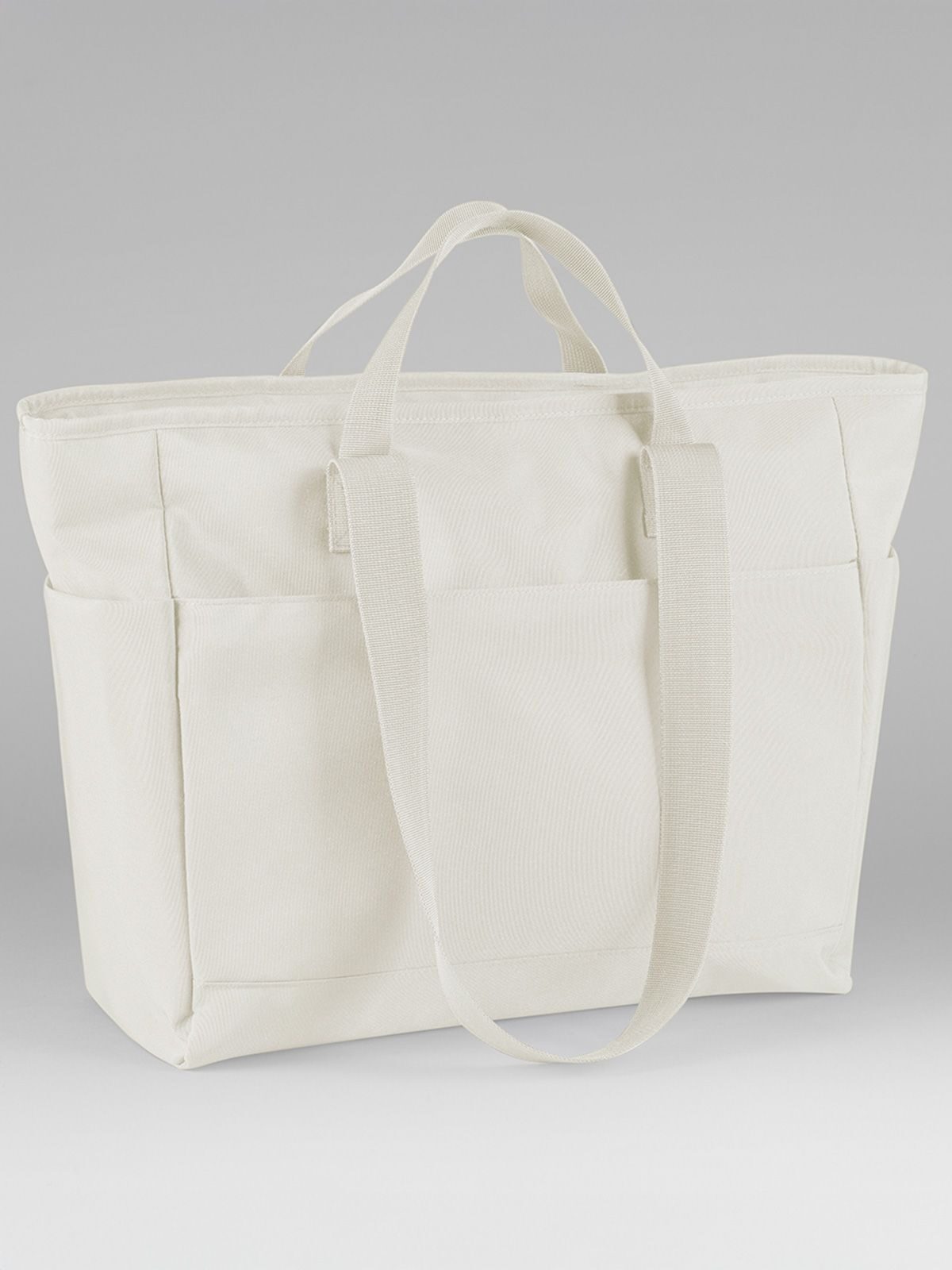 100% poliestere riciclato 600D. Shopper a doppio manico, stile minimalista, leggermente imbottita, idrorepellente, ampio scomparto principale con cerniera, tasca interna con cerniera, tasca frontale con cerniera, tasche laterali. Etichetta removibile. GRS certificato da Control Union CU811033. Lunghezza manici: 35/85cm. Dimensioni: 35x55x16,5cm. Capacità: 32 litri. Area di stampa: 34x18 cm (tasca frontale).