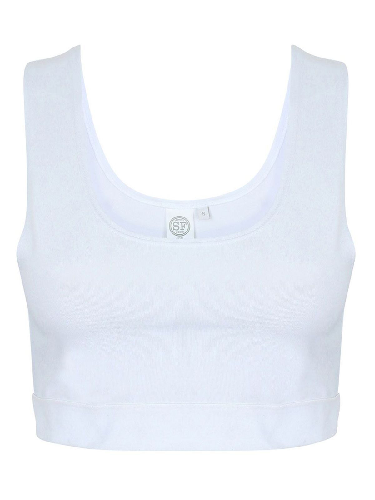 Top girocollo profondo, banda elastica inferiore personalizzabile, adatto alla stampa sublimatica, cuciture a doppio ago, etichetta strappabile. Struttura con cuciture laterali.