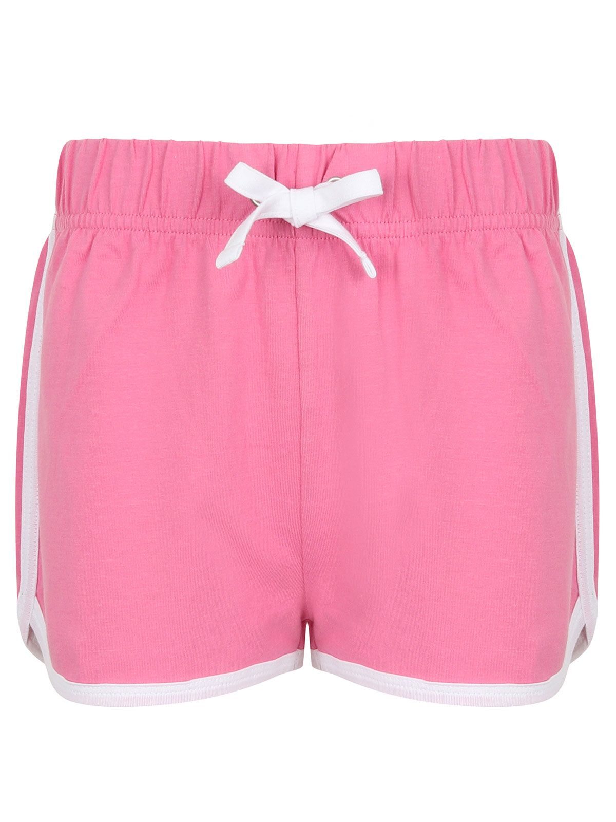 Pantaloncini dal look retrò con cuciture orlo e cordoncino in contrasto, elastico in vita, stile unisex. Etichetta a strappo, per un facile re-branding.