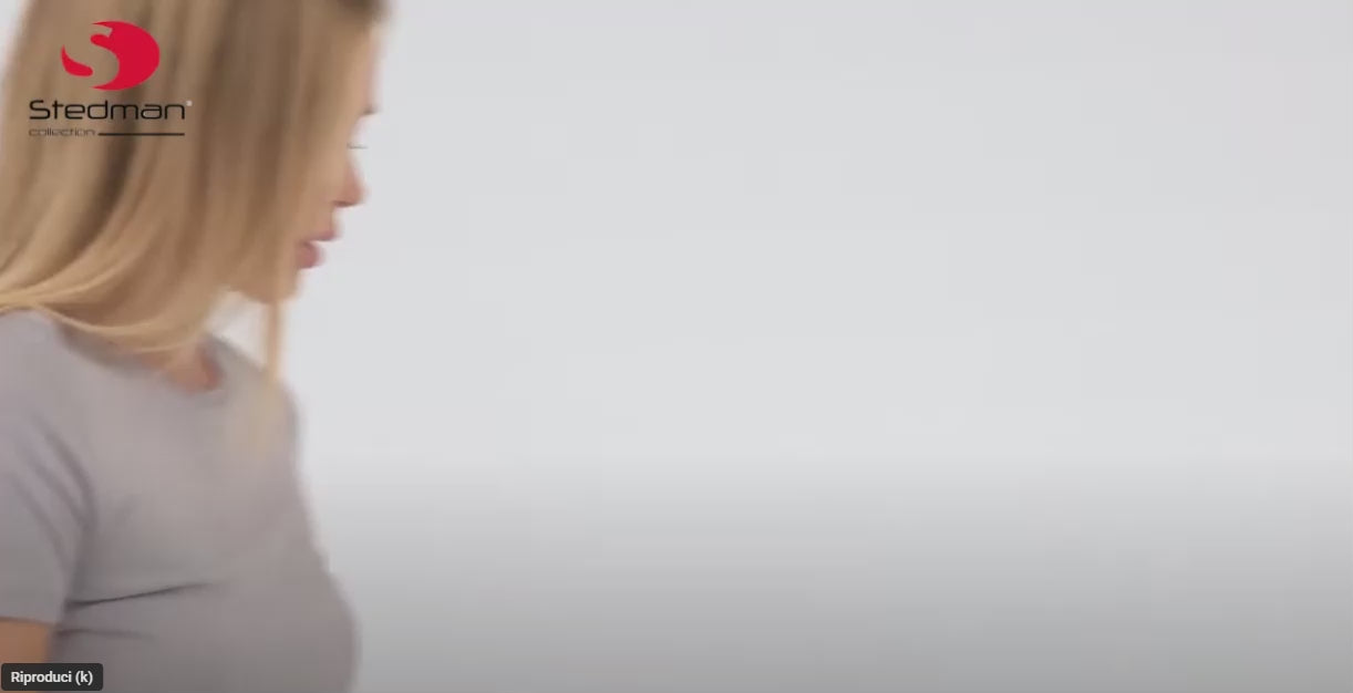 T-shirt manica corta girocollo, nastro di rinforzo alle spalle, cucitura a doppio ago su maniche e vita, struttura con cuciture laterali. Col. GYH: 85% cot. 15% visc.