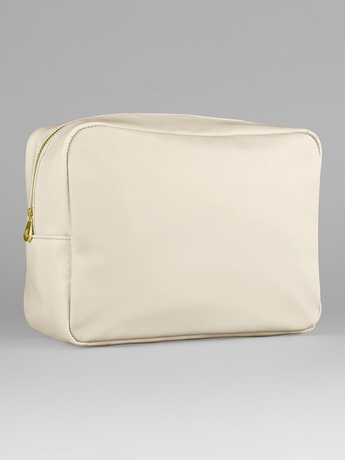 100% nylon. Beauty case multiuso, tessuto e rifiniture di alta qualità, scomparto principale con cerniera, cerniera e tiretto in metallo dorato. Fodera in poliestere riciclato. Etichetta removibile. Dimensioni: M 25.5x7x14. Capacità: 2litri. Area stampa: 22x12cm. Dimensioni L: 26x12x20.5cm. Capacità: 6litri. Area di stampa: 23x16cm.