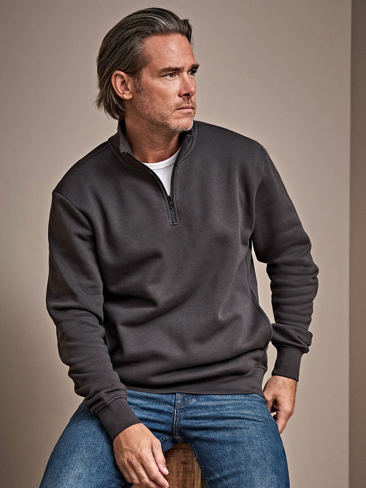 Felpa doppia tintura, costine in lycra per una maggiore stabilità , tessuto a 3 fili, superficie liscia, tessuto ruvido sul retro, lavabile a 60° C.